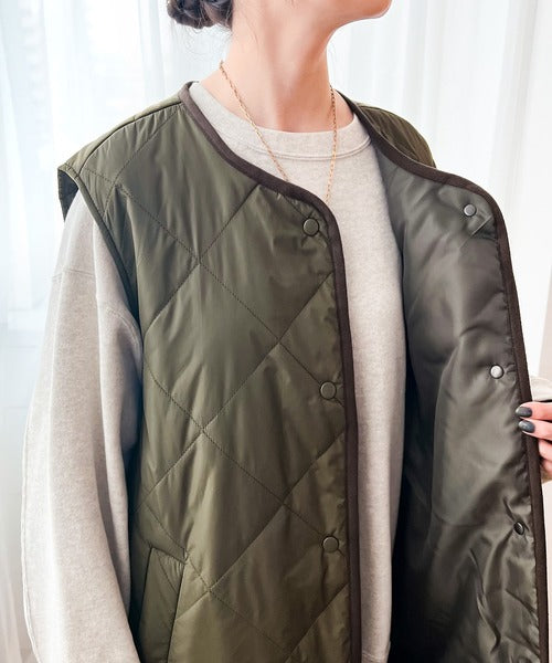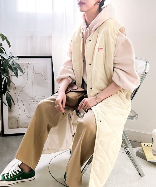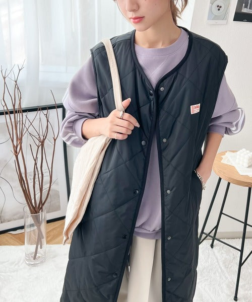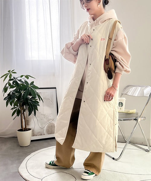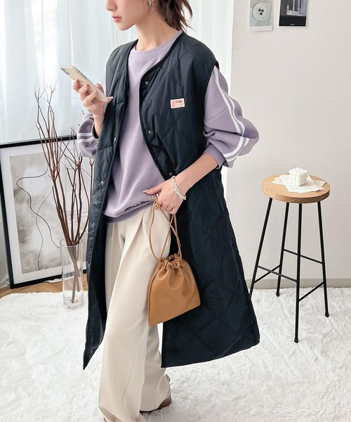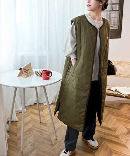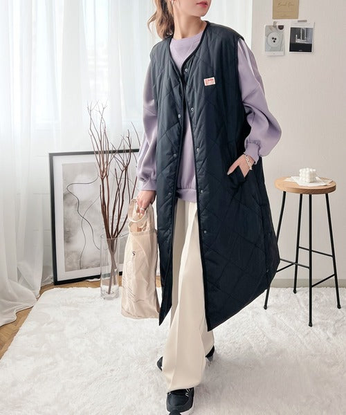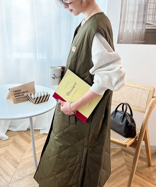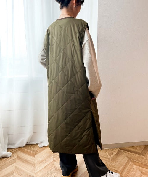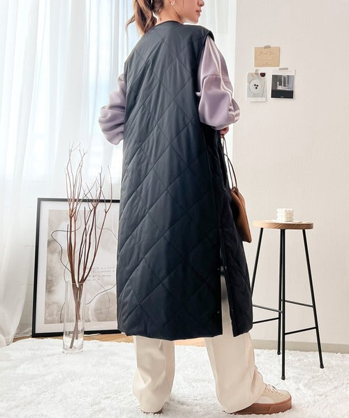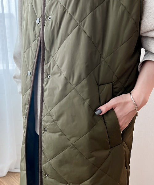 季節の変わり目に重宝するロング丈のキルティングベスト。
