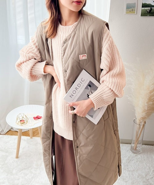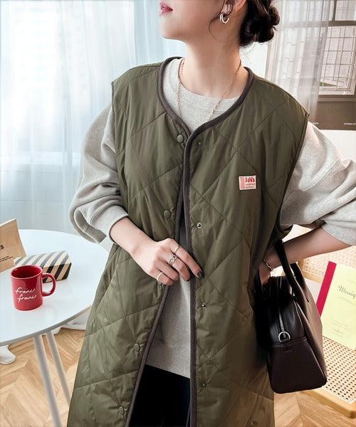 《JaVa ジャバコラボ》大人シンプル。中綿キルティングロングベスト jv0420006