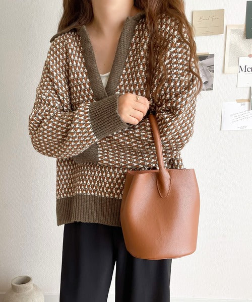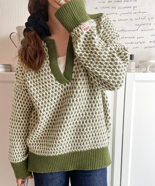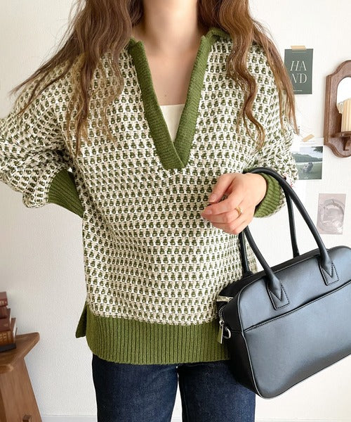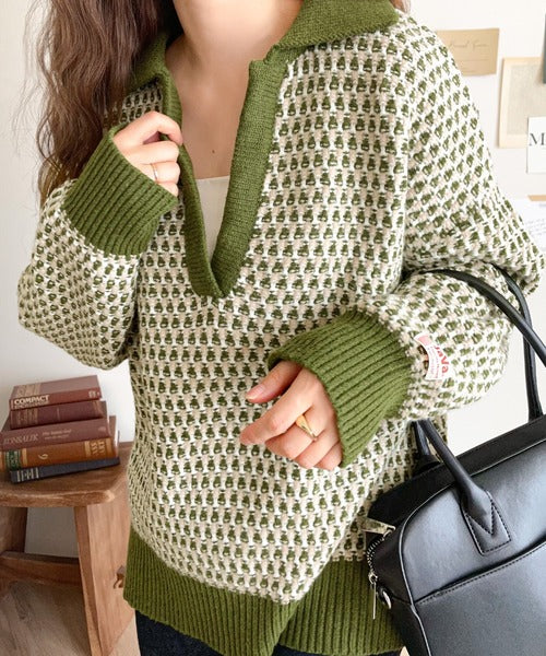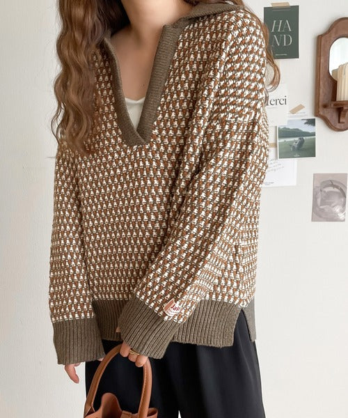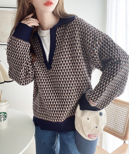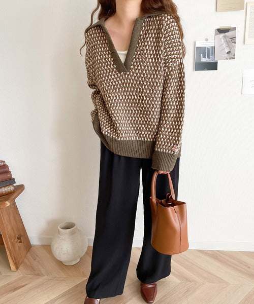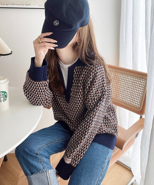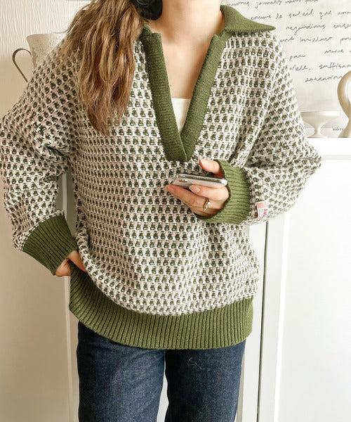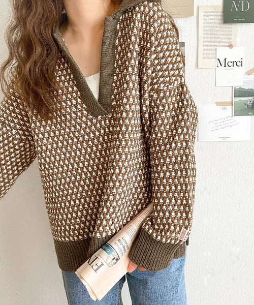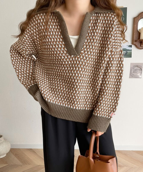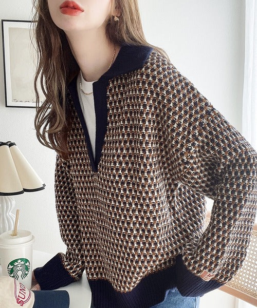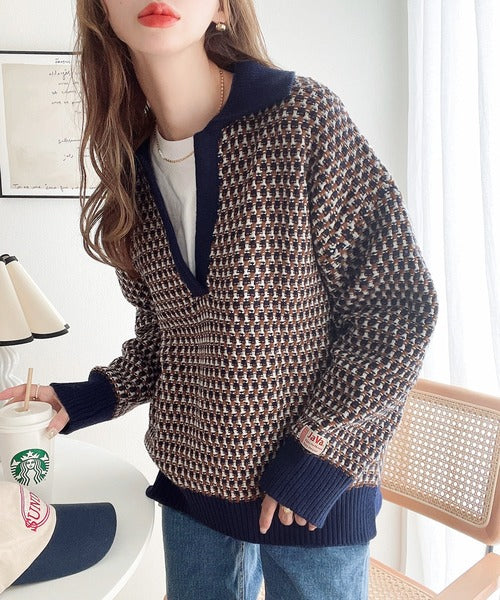 《JaVaジャバ コラボ》レトロムードが止まらない。ジャガード配色スキッパーニットプルオーバー jv0420008