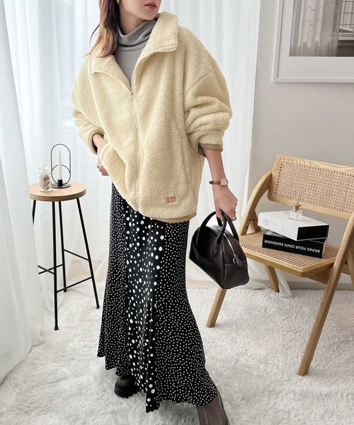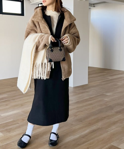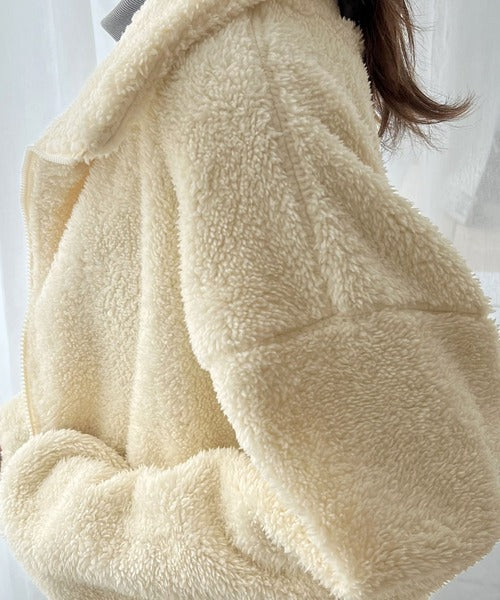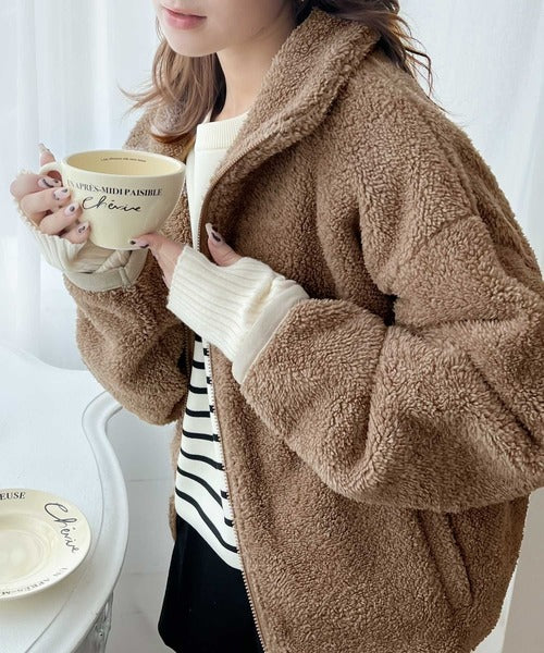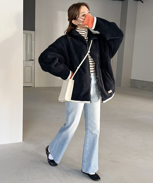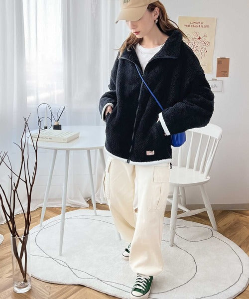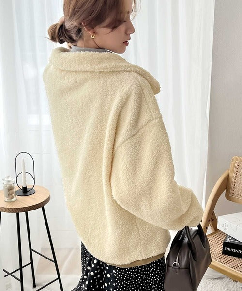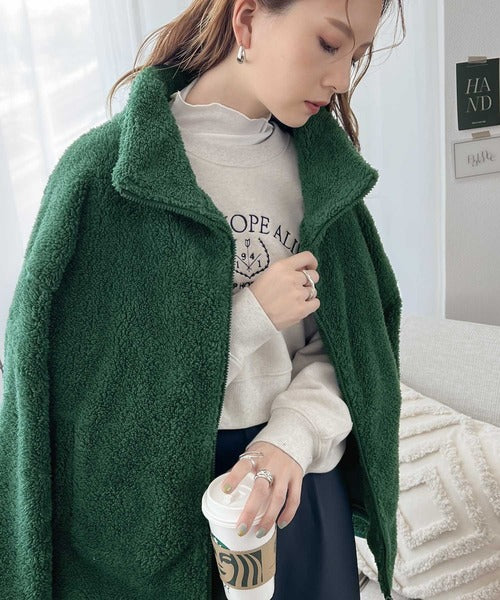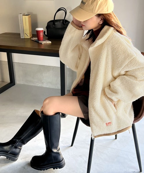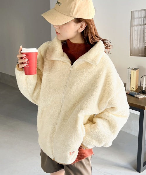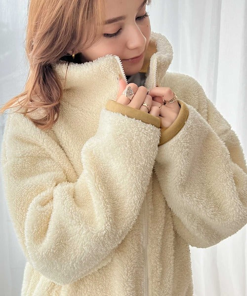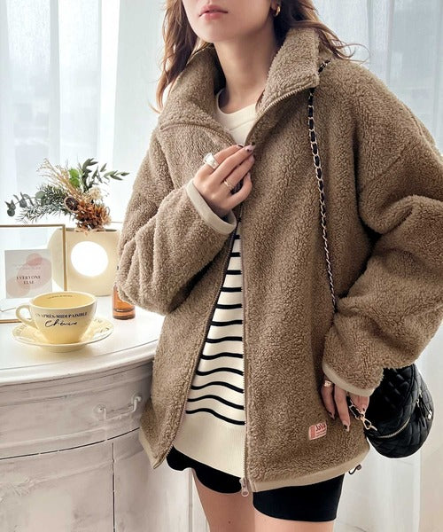 大きめのスタンドカラーがポイントのボアブルゾン。
