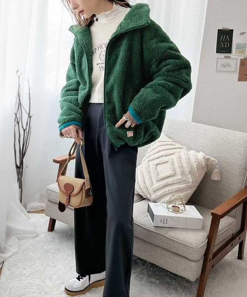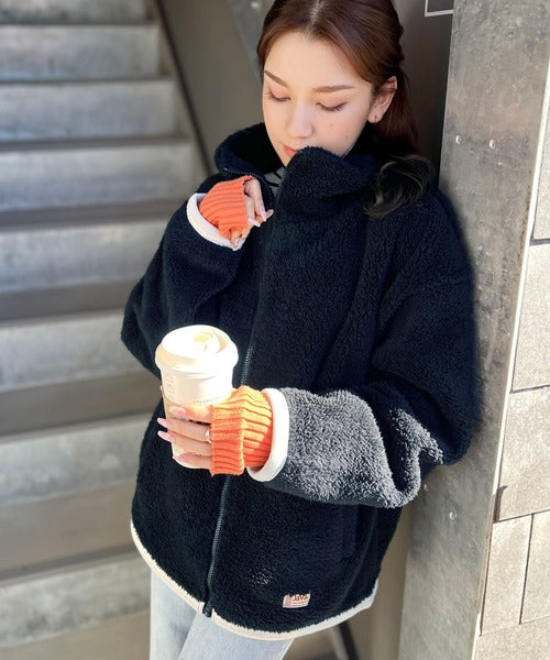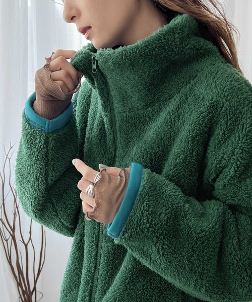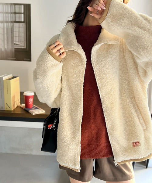 《JaVaジャバ コラボ》ふわもこ暖か。スタンドカラーボアフリースジップアップ jv0590007