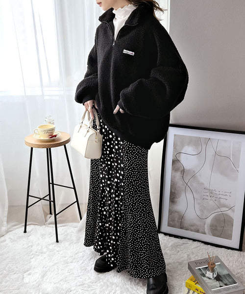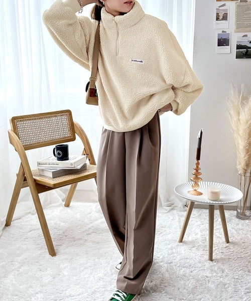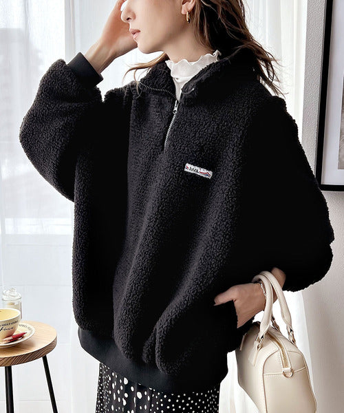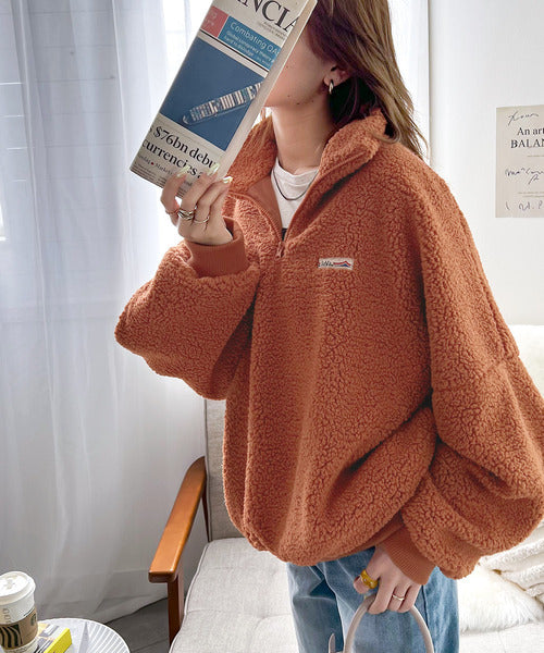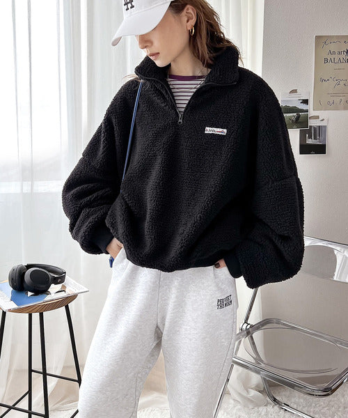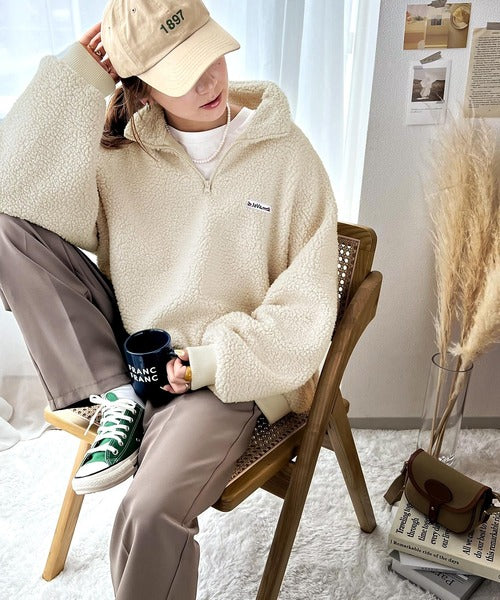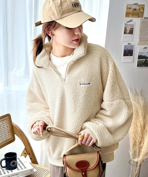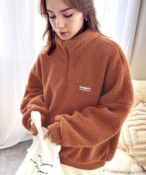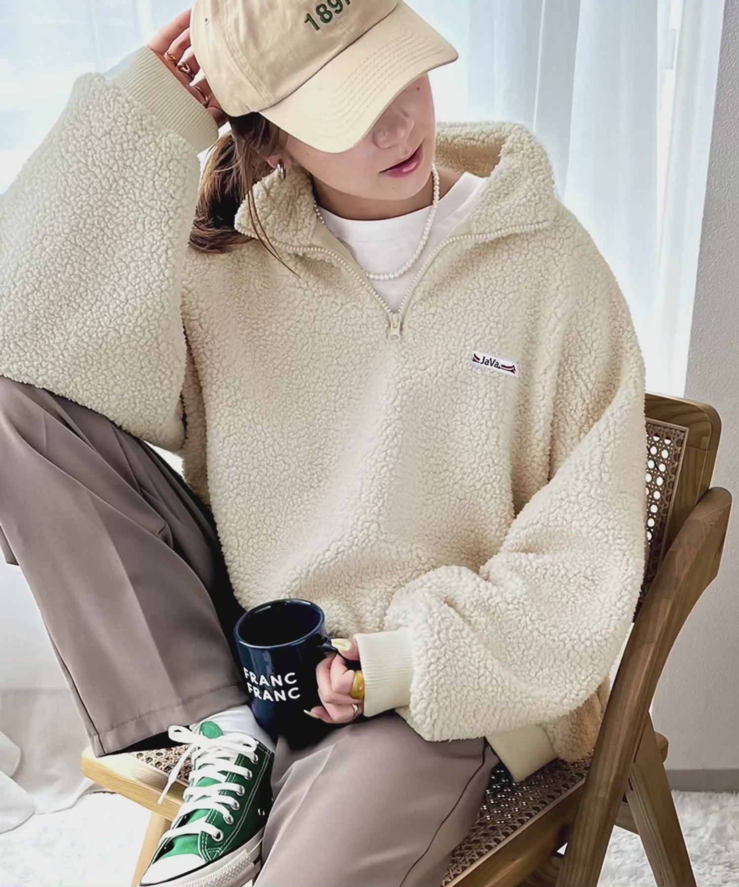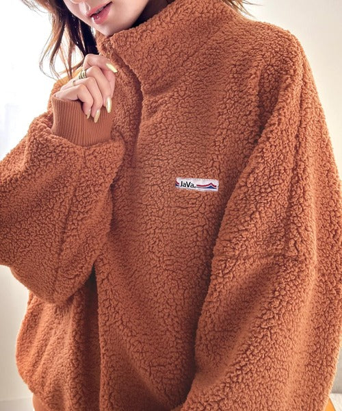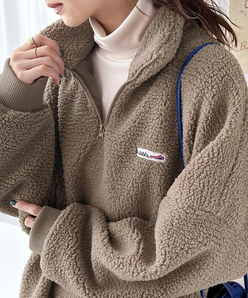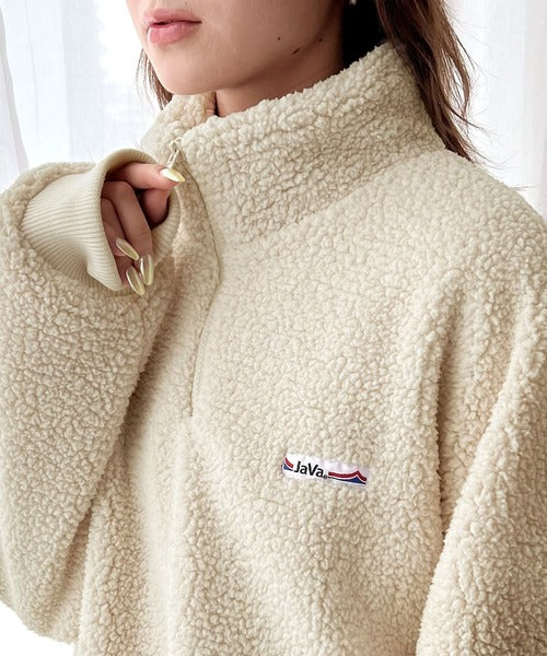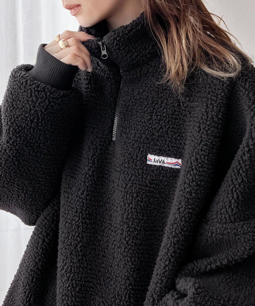 《JaVaジャバ コラボ》ふわもこ暖か。JaVaネーム付きハーフジップボアプルオーバー jv0780009