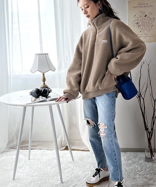 もこもこボア素材でアウトドア要素をプラスしたカジュアルアウター。