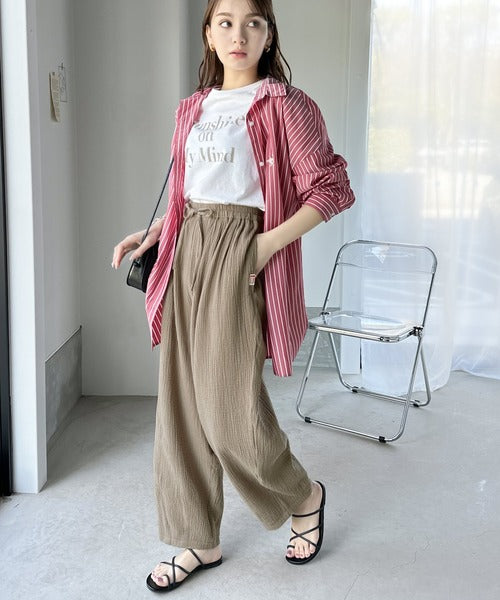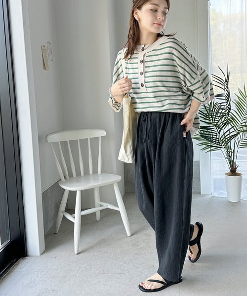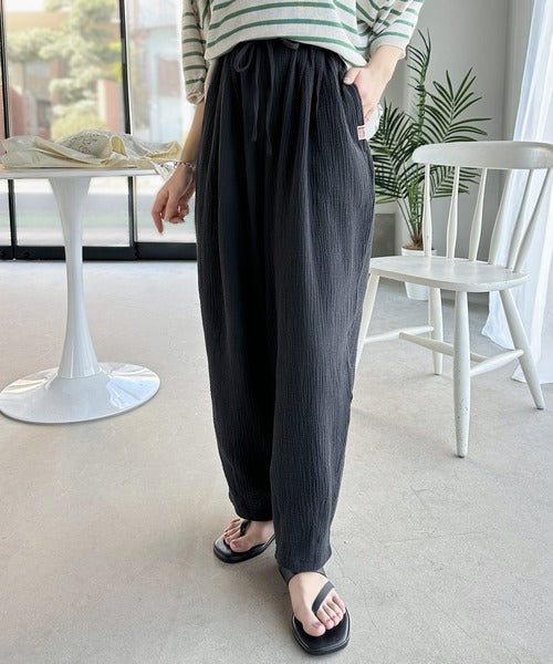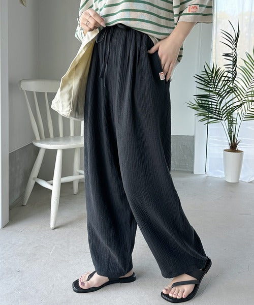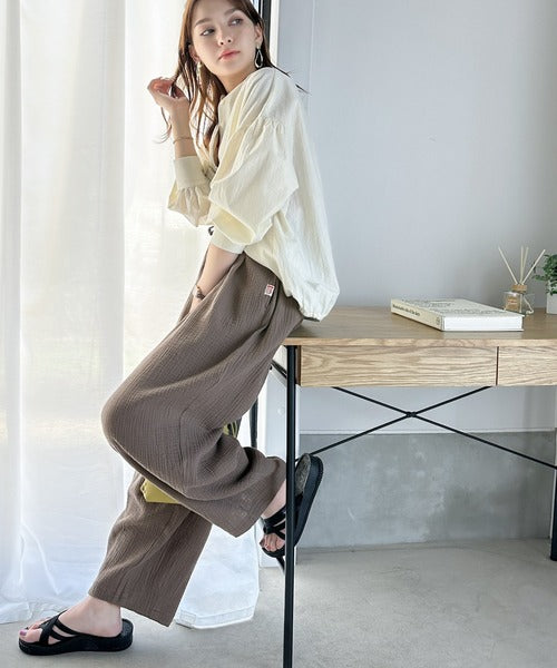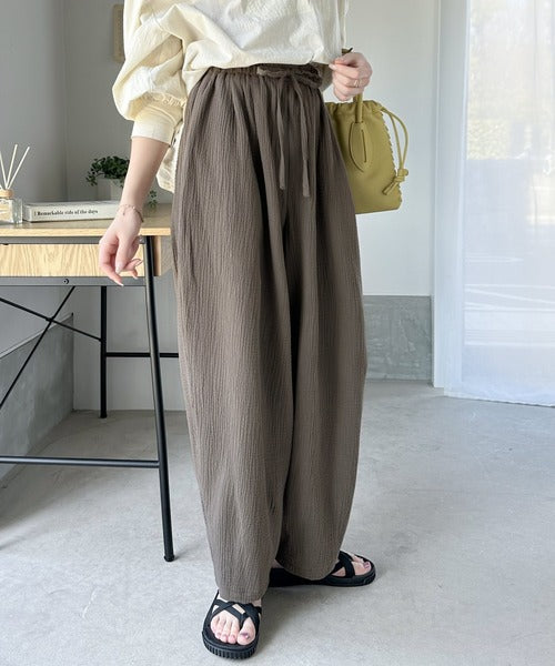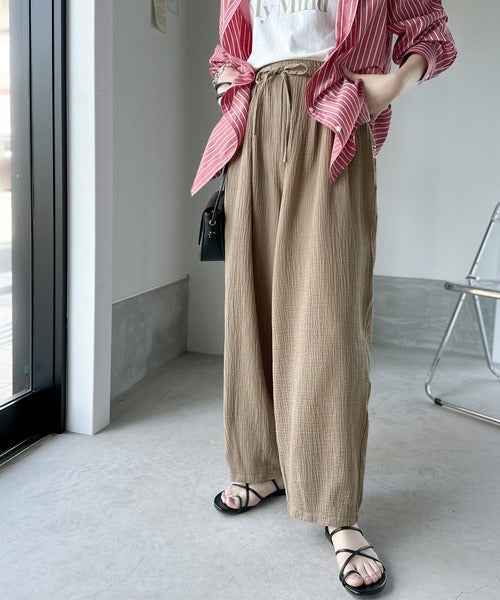 コットンWガーゼの楊柳サーカスパンツ。