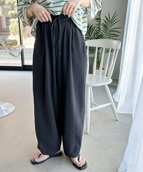 楊柳素材で見た目も履き心地もリラクシーなバルーンパンツ。