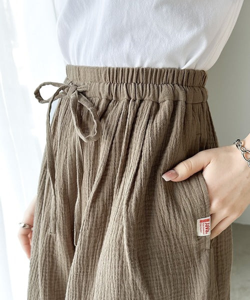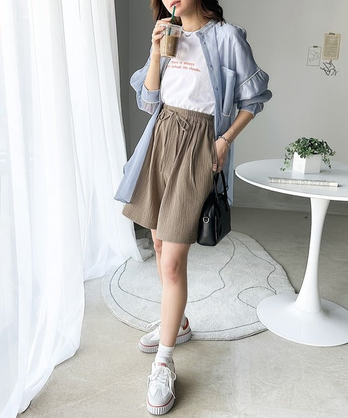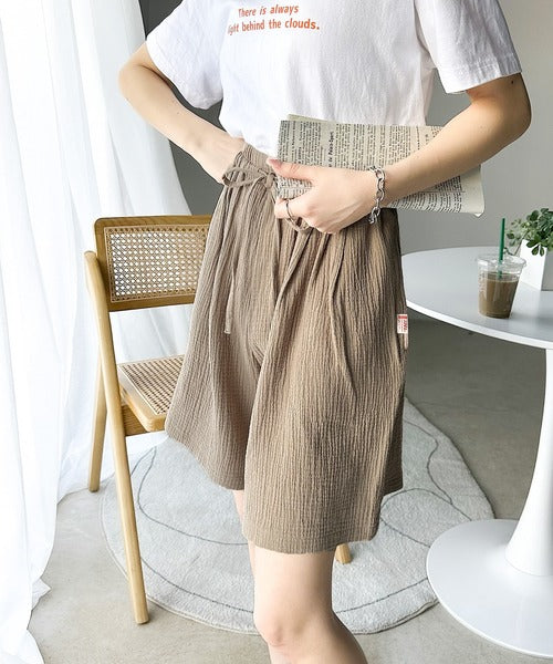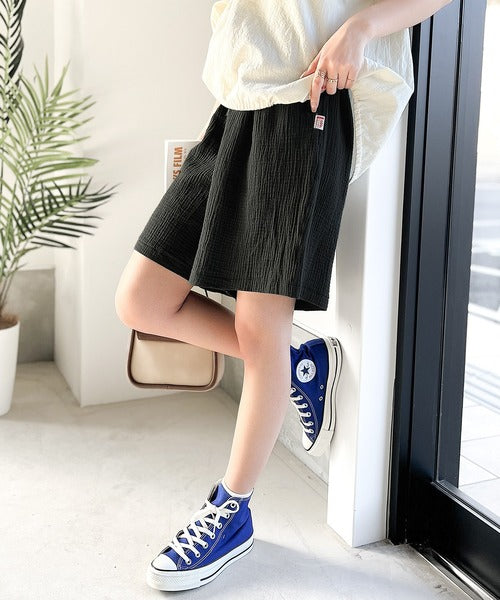 コットンWガーゼの楊柳ハーフパンツ。