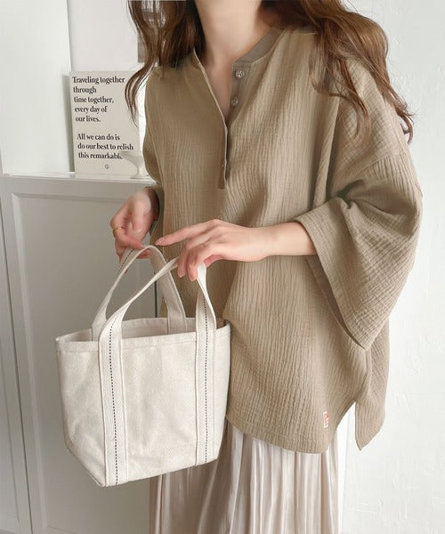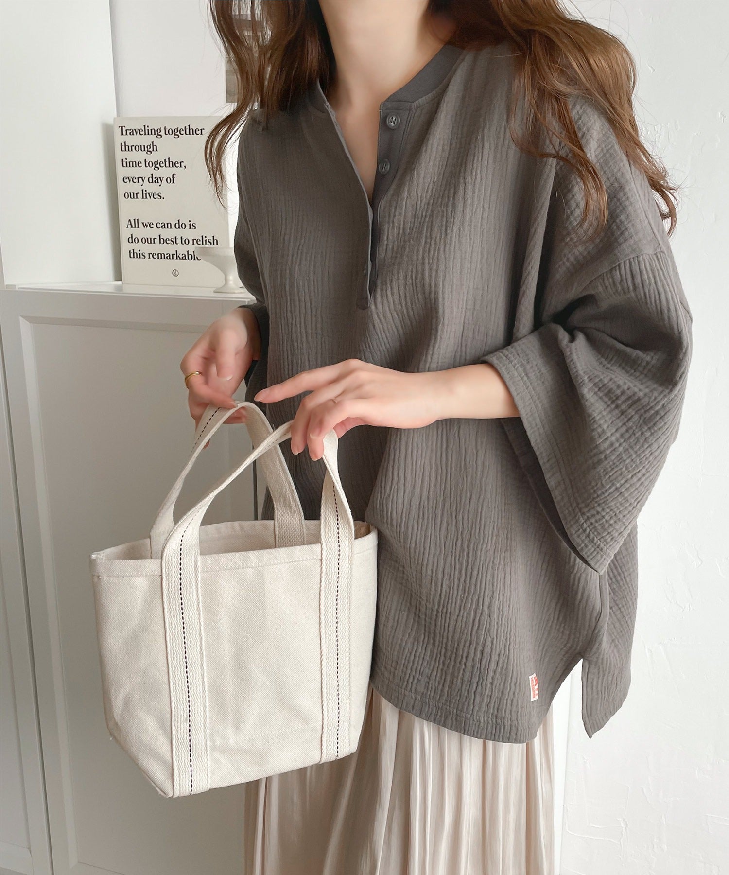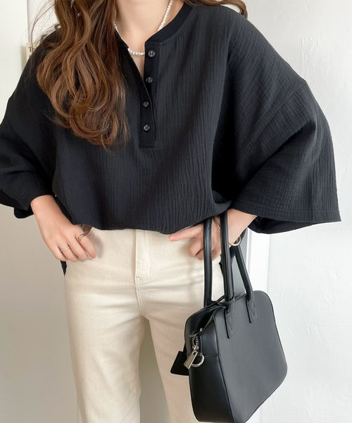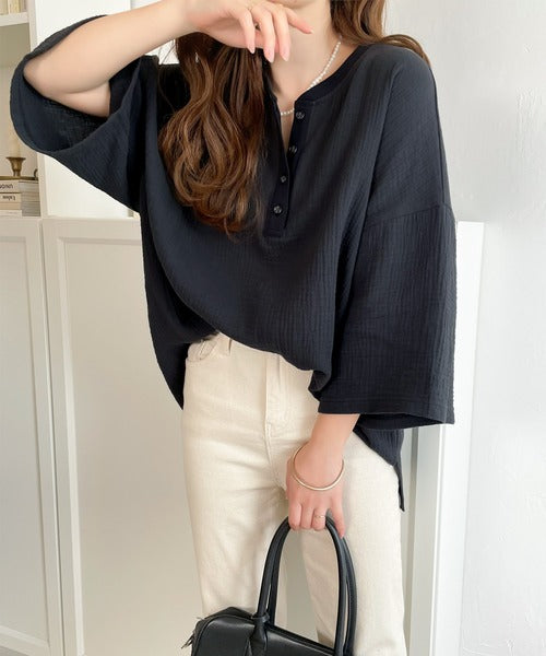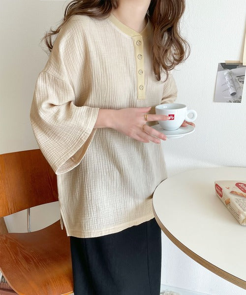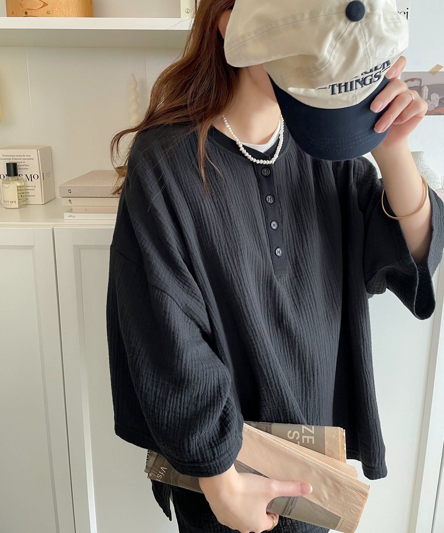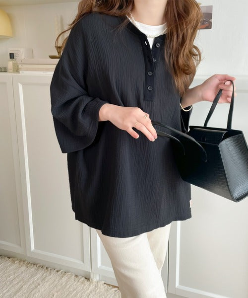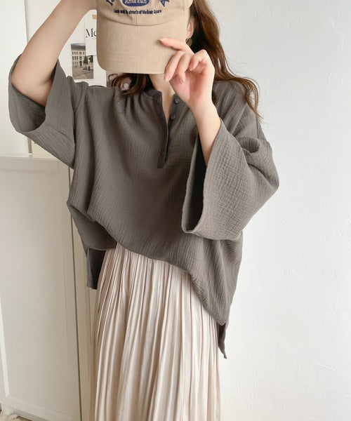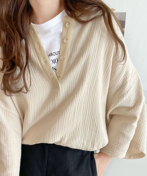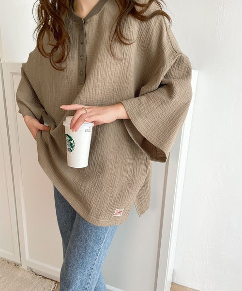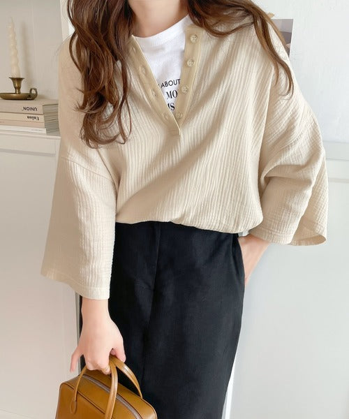 《JaVa ジャバコラボ》大人リラックス。綿100%楊柳ヘンリーネックプルオーバー jv0940119