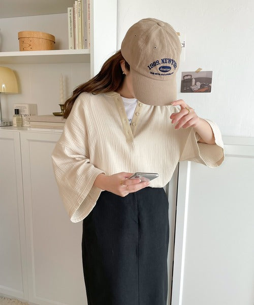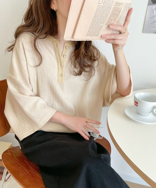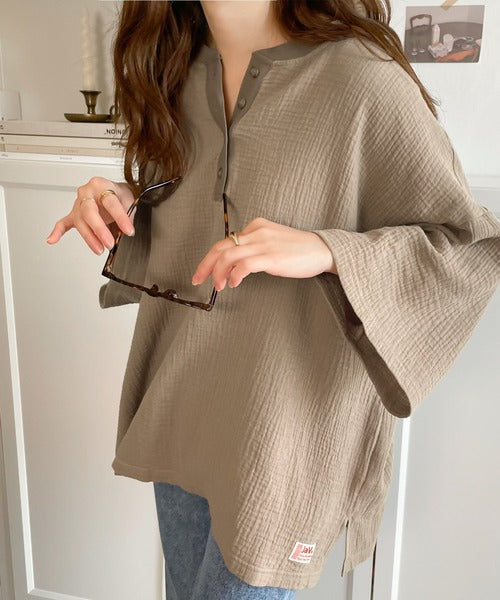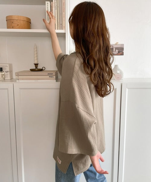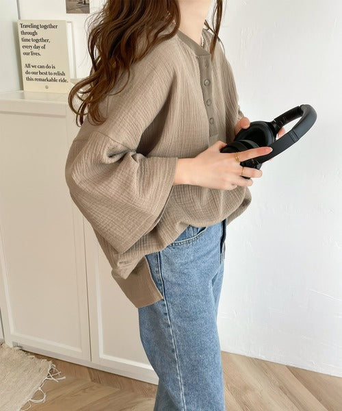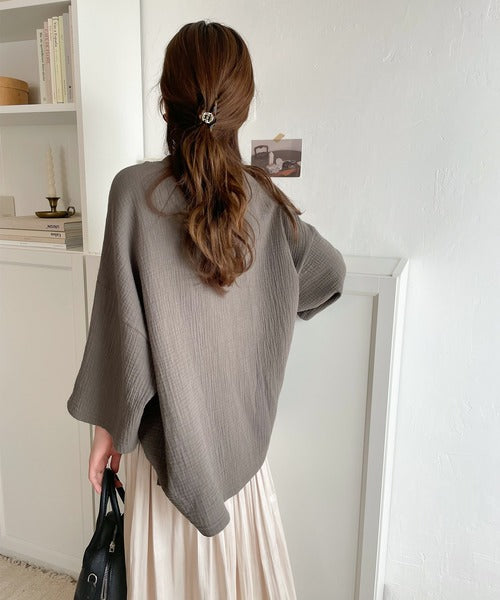 リラクシーな雰囲気と楊柳風素材で存在感抜群の1枚。