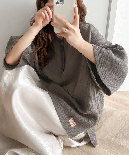 楊柳ガーゼ素材で涼しげな軽やかさが心地いい。