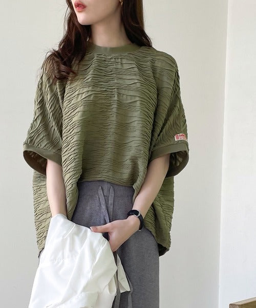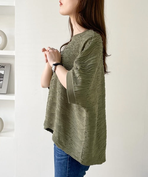 《メンズも着れちゃう、ふくれジャガードドルマンプルオーバー》