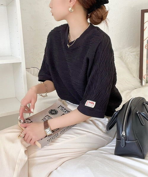 《JaVa ジャバコラボ》こなれ上級見え。ふくれジャガードドルマンプルオーバー jv0940124