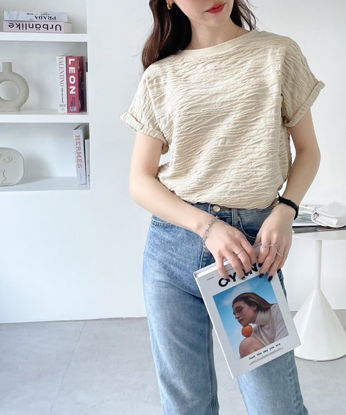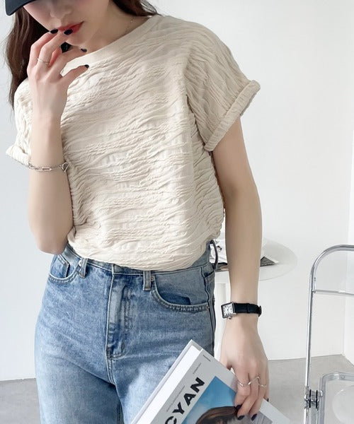 《メンズも着れちゃう”ふくれジャガードフレンチトップス”》