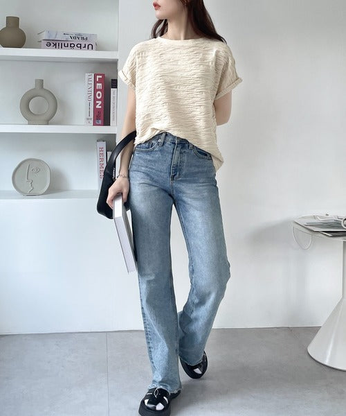 シンプルにハイウエストデニムと合わせてカジュアルに着るのはもちろん、レディライクなコーディネートにもぴったりです。