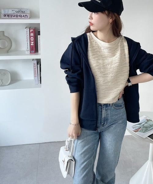ベーシックな形のトップスは上品なジャガード素材で差をつける!