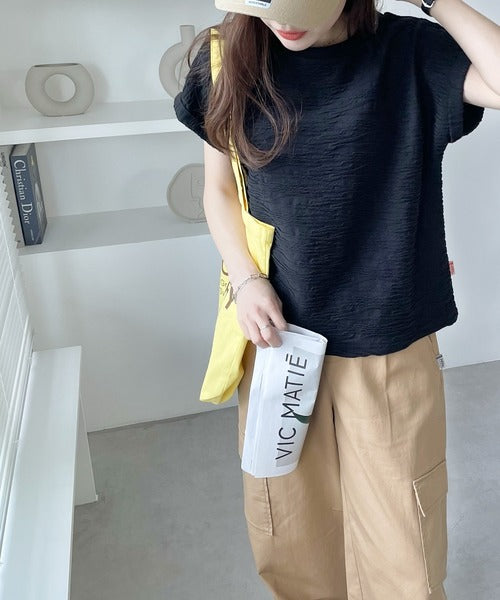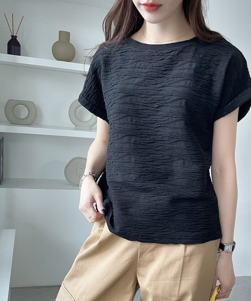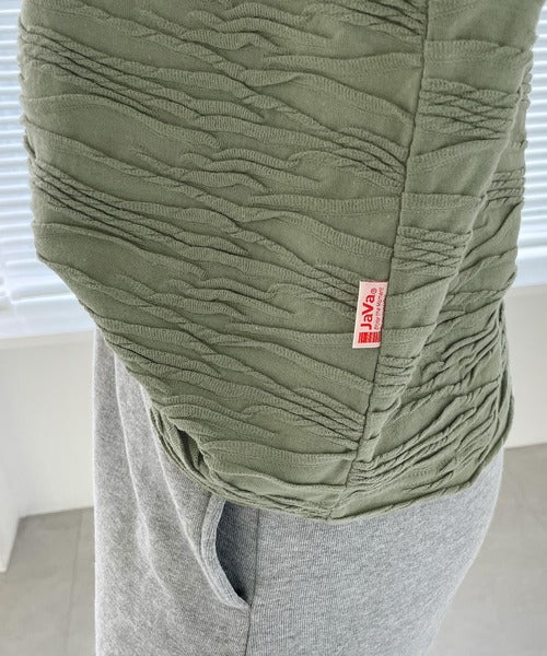 《JaVaジャバ コラボ》これ1枚でサマになる!上品見えふくれジャガードフレンチトップス jv0940133