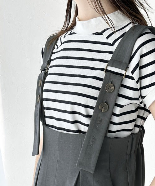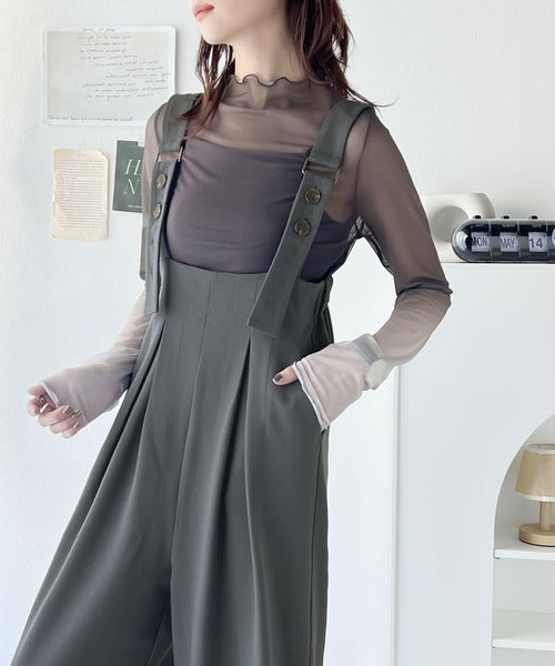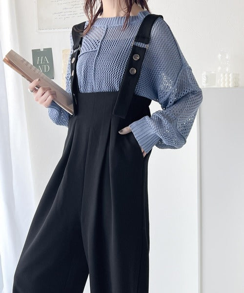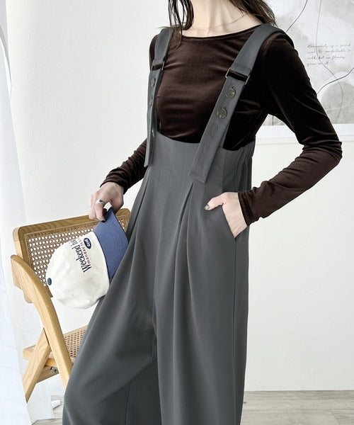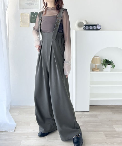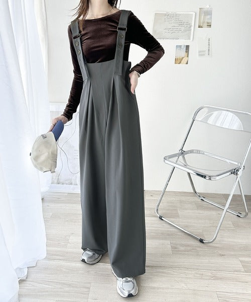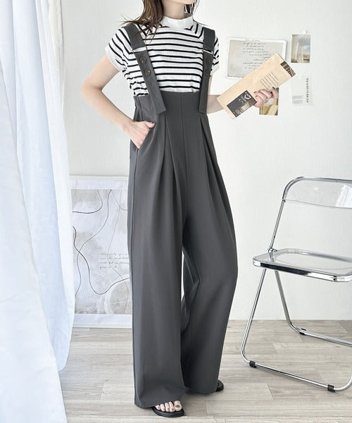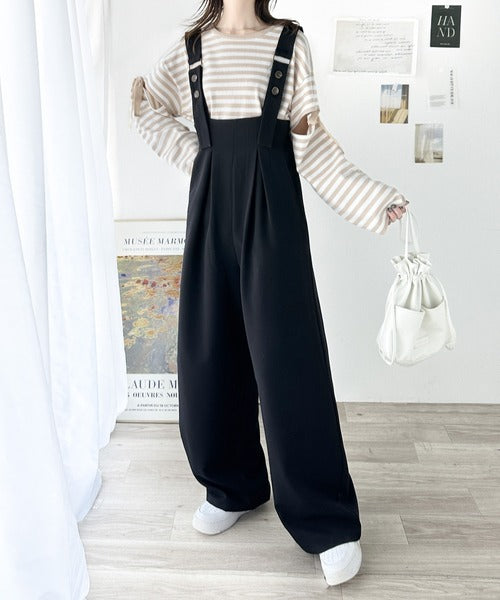 《Javaジャバコラボ》ほんのりレトロが旬。ハイウエストボタン付きワイドサロペット jv0940178