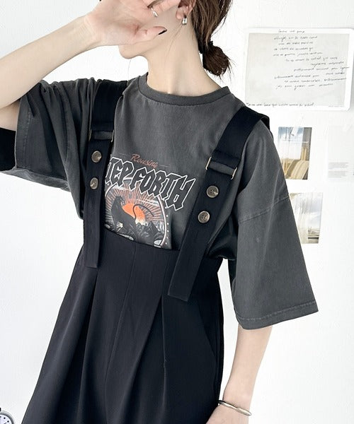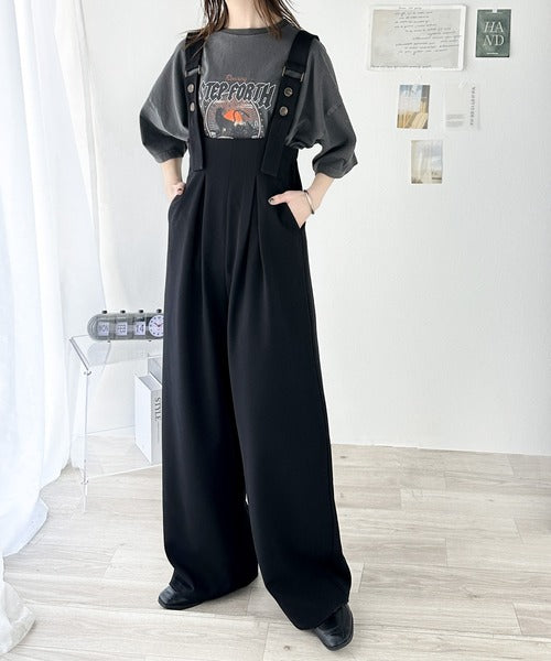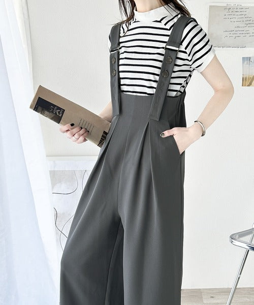 レトロ感がアクセントの、大人のワイドサロペット。