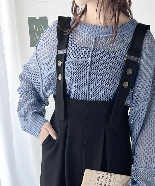 Tシャツやカットソーから薄手のニット、ハイネックやシアーインナーなど幅広いインナーアイテムと相性が良く、