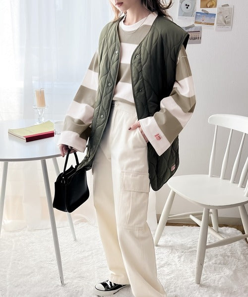存在感のある太ボーダーが、メリハリのある大人カジュアルに着こなせます。