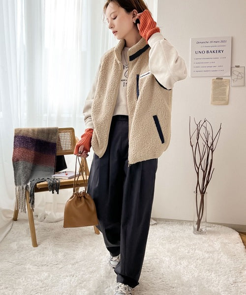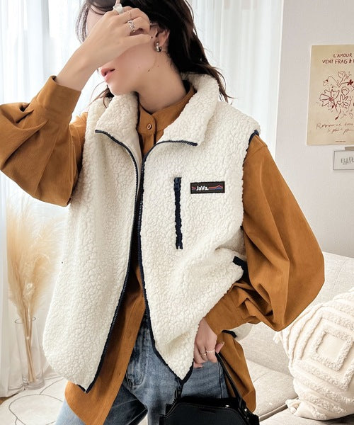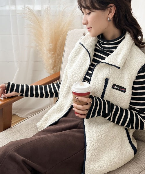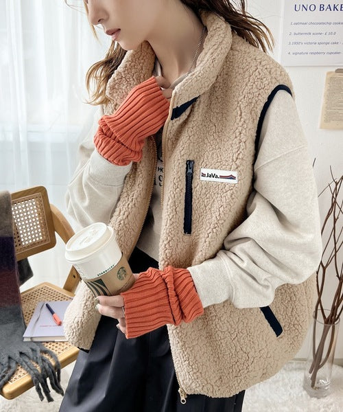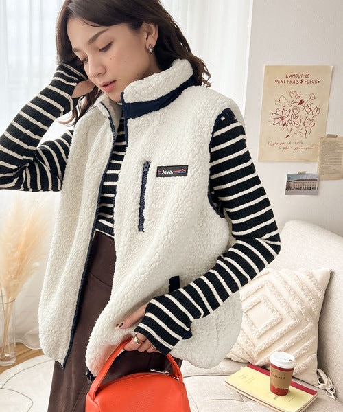 《JaVa ジャバコラボ》瞬時にお洒落。ふわもこ配色ボアベスト jv1010184