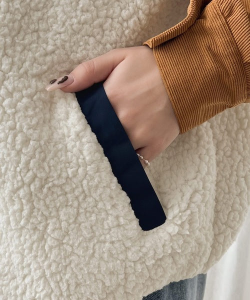 大人可愛いもこもこボア素材は暖かく機能性もばっちり。