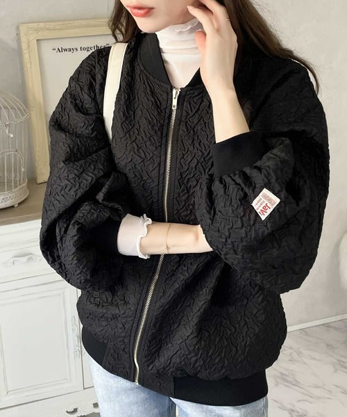 エンボス加工が目を惹く羽織るだけでキマるジップブルゾン。