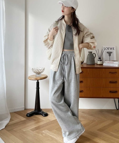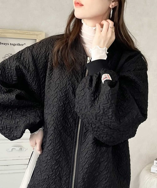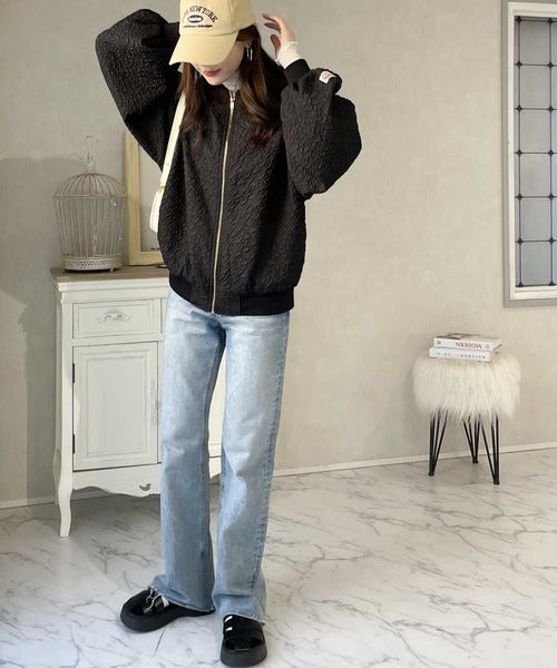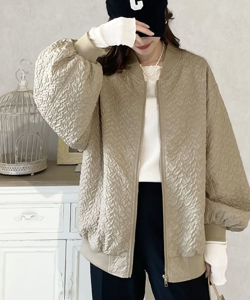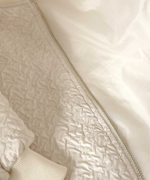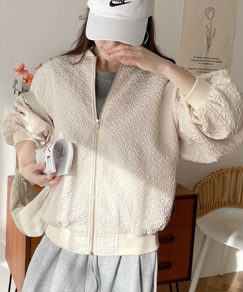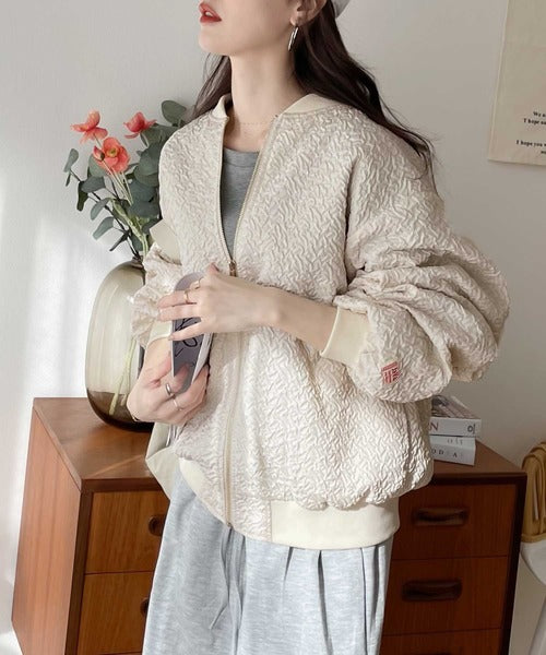 凹凸感のある素材が上品な表情を演出するジップブルゾン。