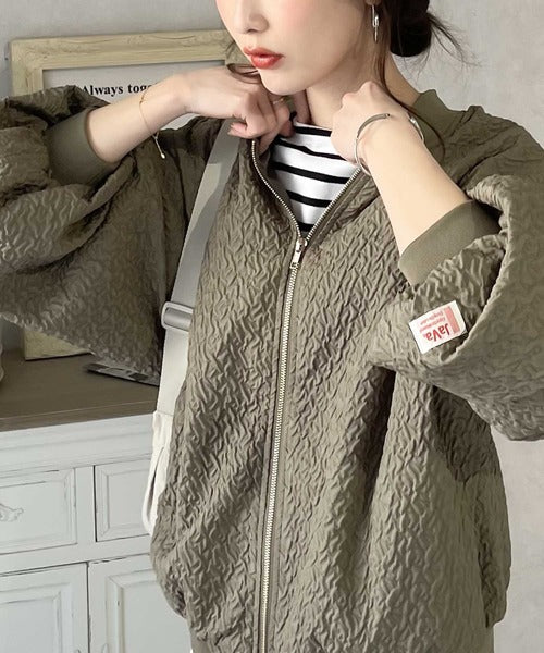 《JaVaジャバ コラボ》大人の上品。エンボス加工ジップブルゾン jv1010186