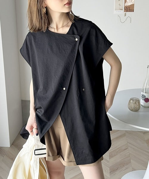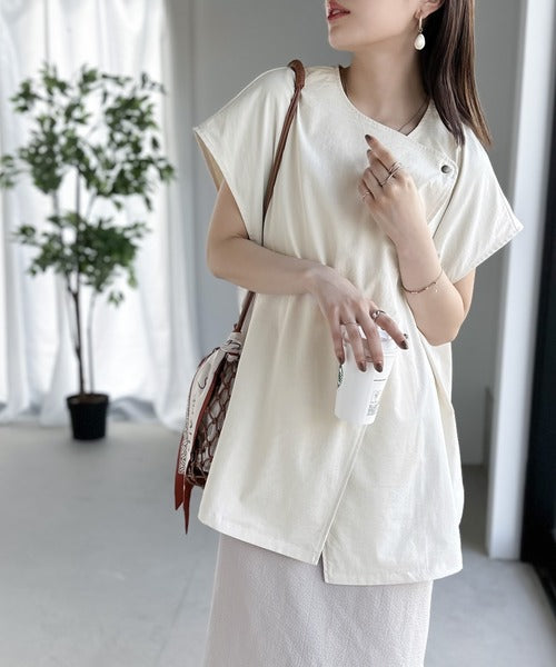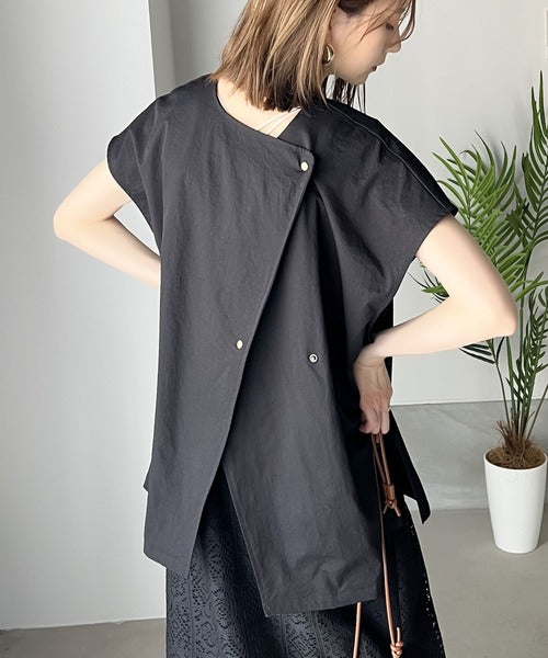 身頃のゆったりとしたシルエットに、フロントボタンでアクセントを加え、