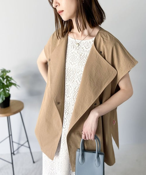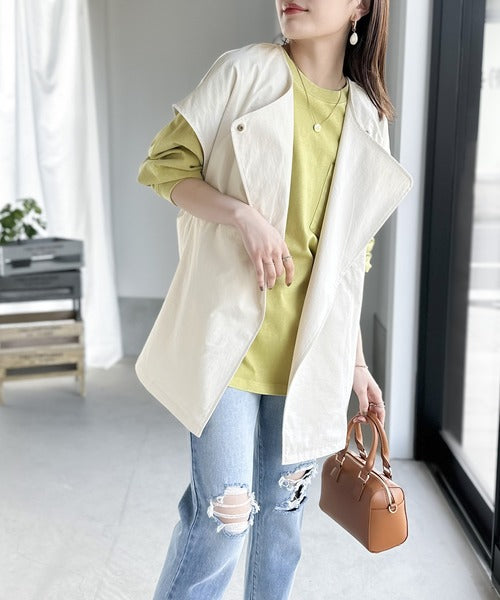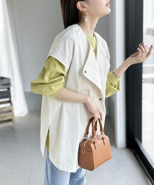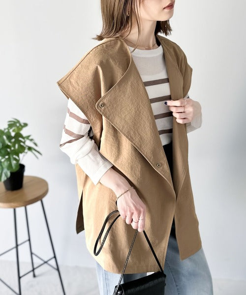 大きめな襟がアクセントのオーバーサイズジレ。