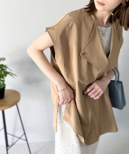 スタイリッシュな襟がこなれた印象を与えてくれるジレは、