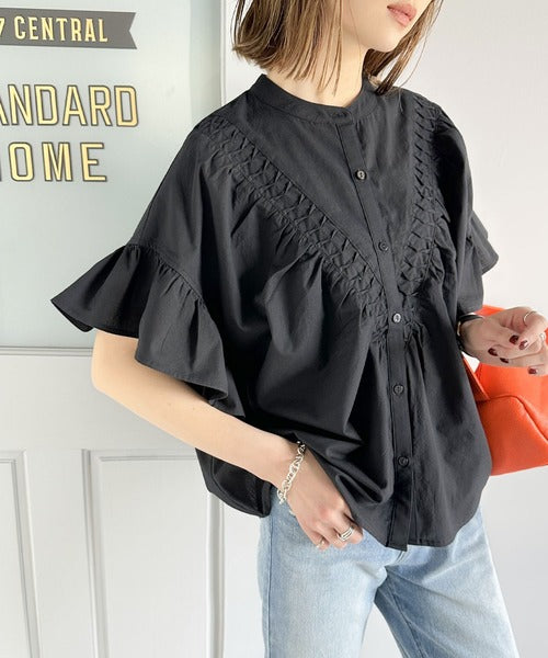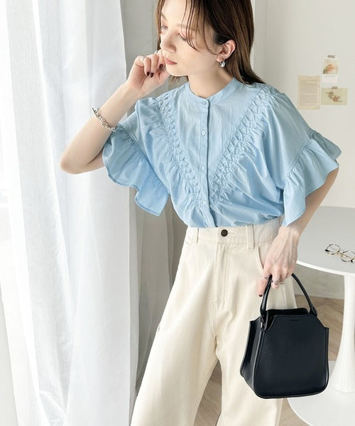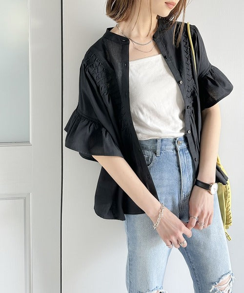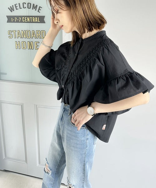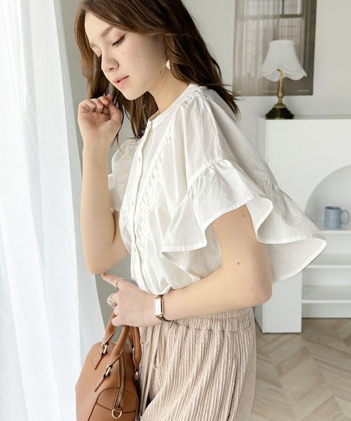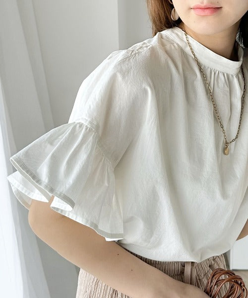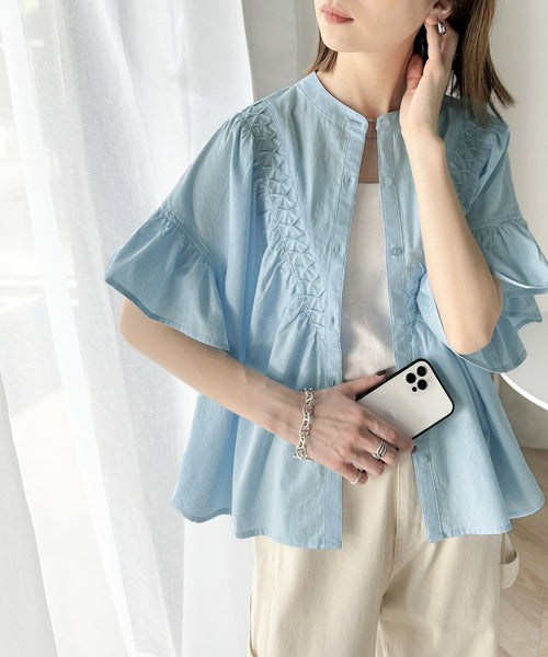 《JaVaジャバ 別注》夏の大人フェミニン。綿100% 2wayタックフリル袖ブラウス jv1010218