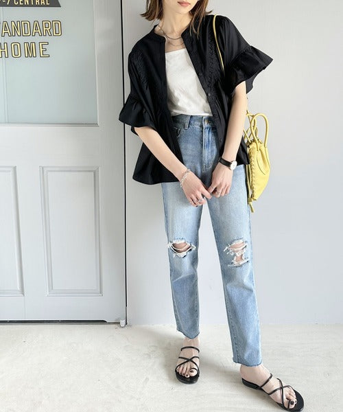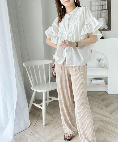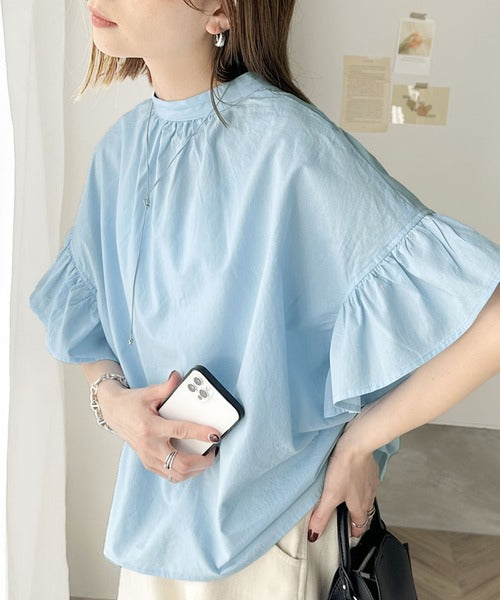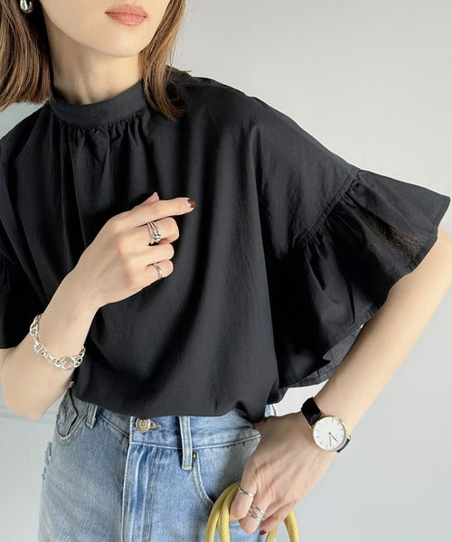 袖の大きなフリルがコーディネートにアクセントを添えてくれます◎