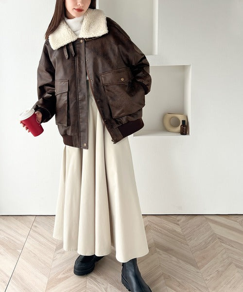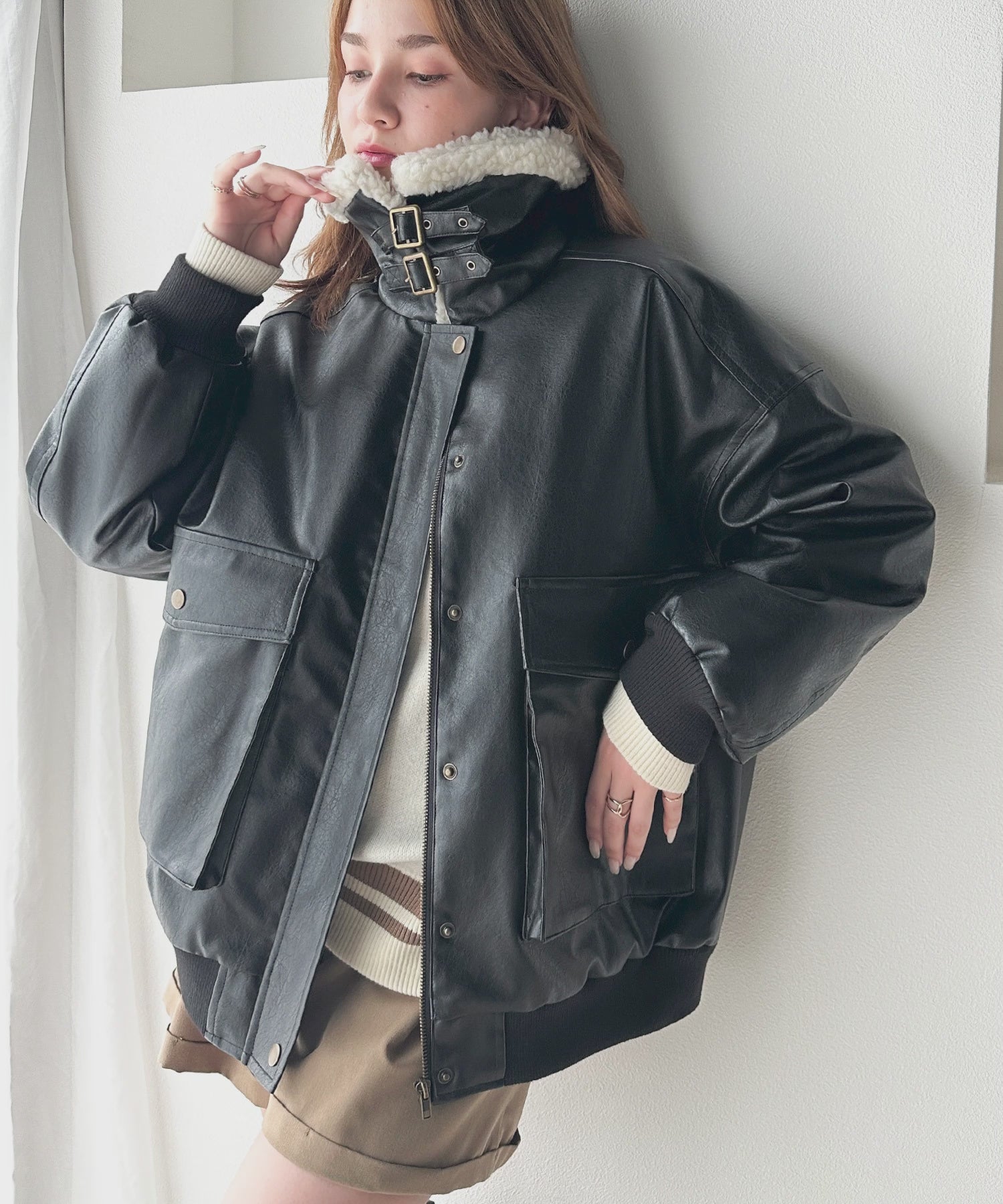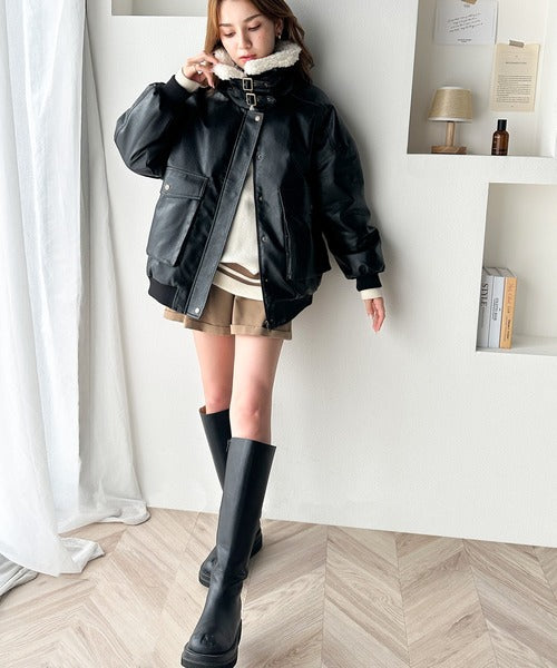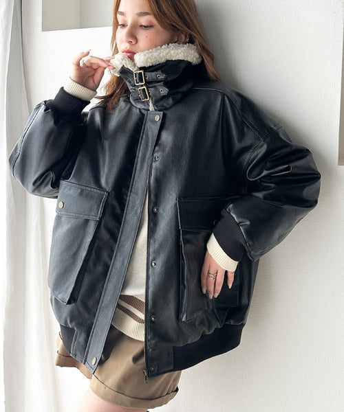 フェイクレザー×ボアの存在感あるルックスで