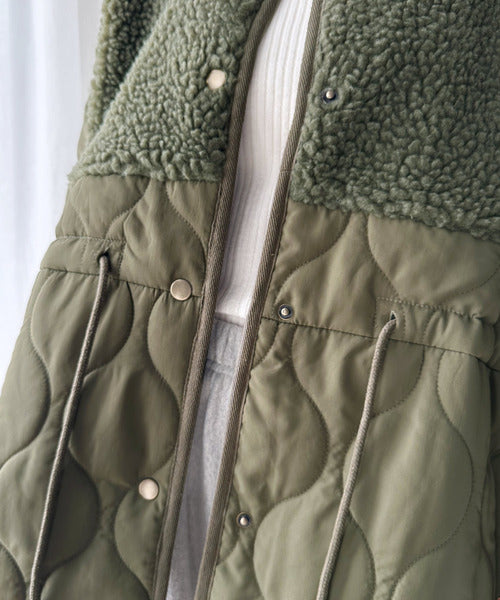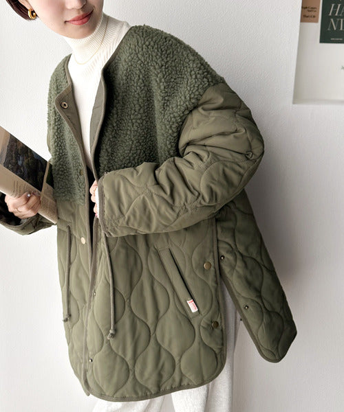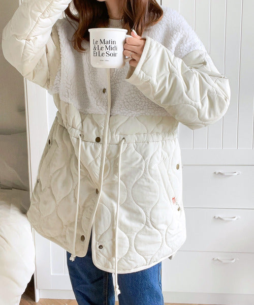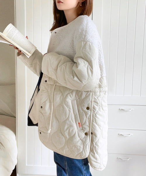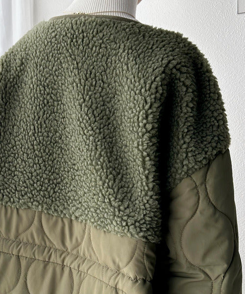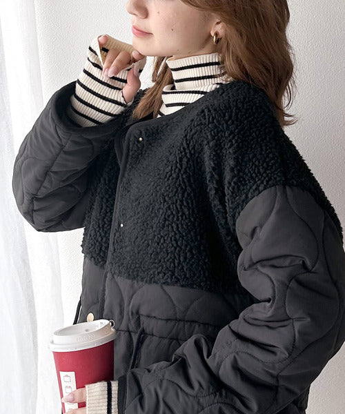 《Javaジャバコラボ》ぬくもり感じる異素材MIX。大人のボア×キルト切替ブルゾン jv1010220