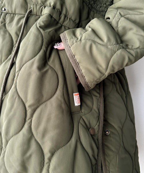 季節感たっぷりのボア素材に、上質な光沢感のウェーブキルト生地をドッキングしたこだわりのデザインは、羽織るだけで目を惹くコーデが完成!