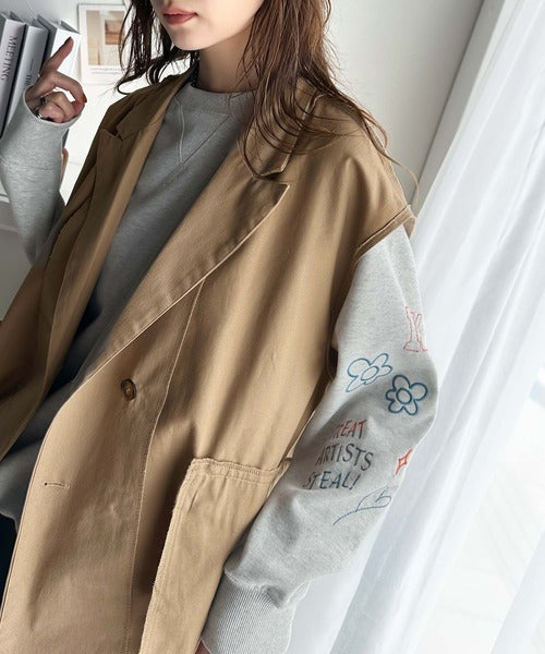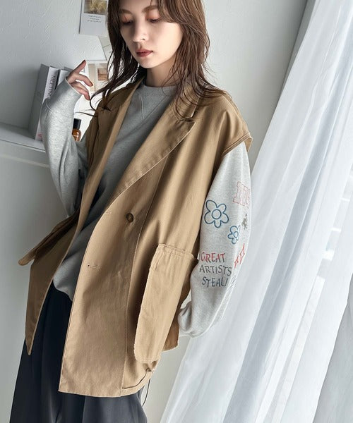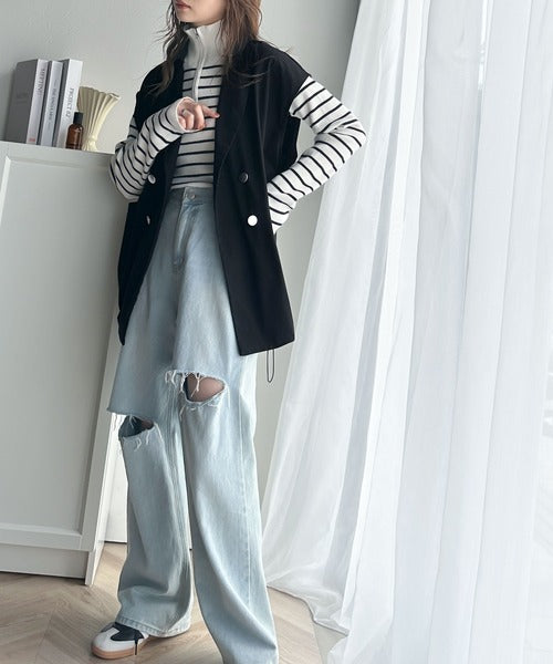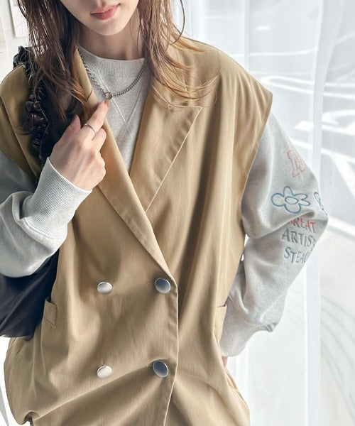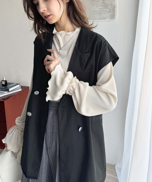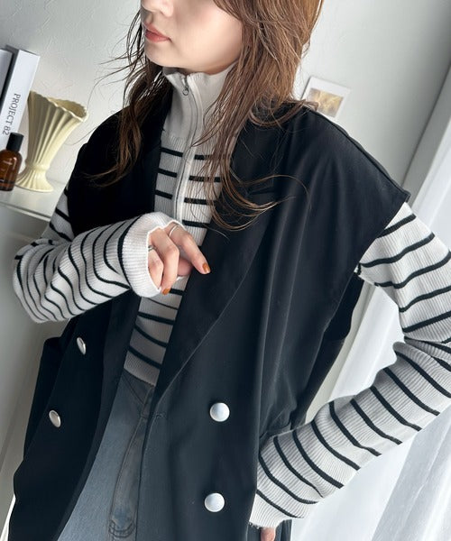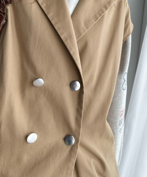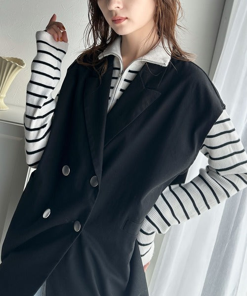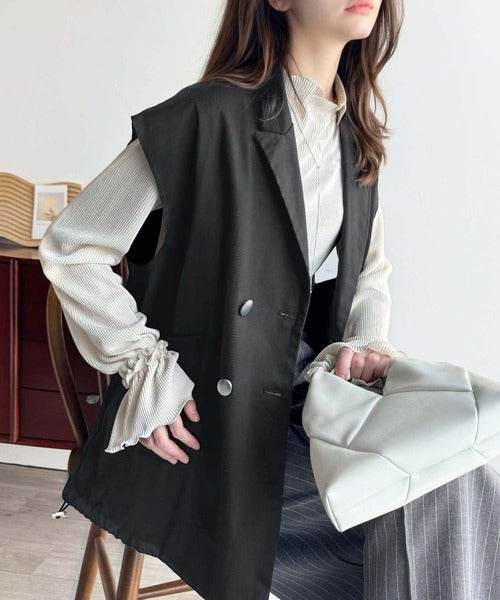 《Javaジャバコラボ》洗練された魅力。綿100%リバーシブル2way裾ドロストダブルテーラードベスト jv1010332