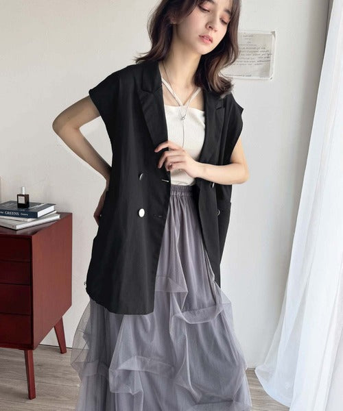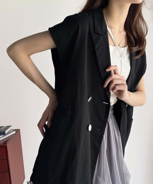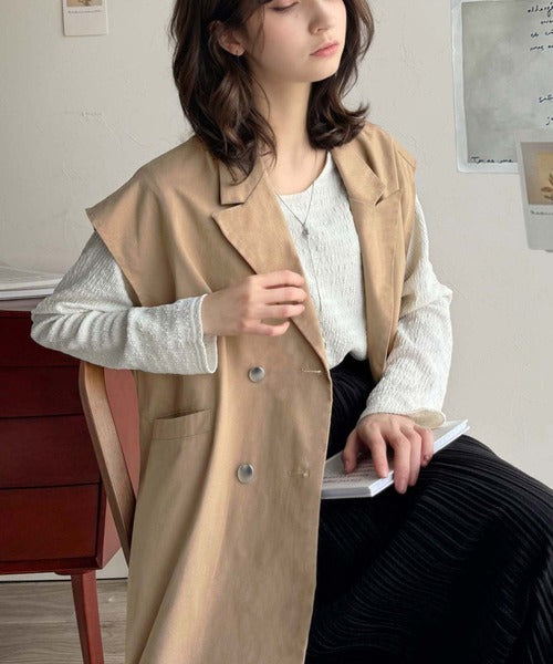 軽くやわらかな着心地で、これからのシーズンにぴったりなテーラードベスト。