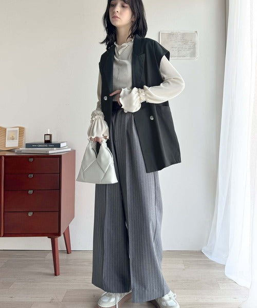 きれいめなスラックスや、ワイドパンツとも合わせやすく