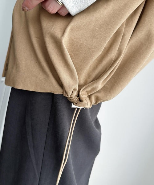 裾に施されたドローストリングを絞ることで、シルエットを調整し
