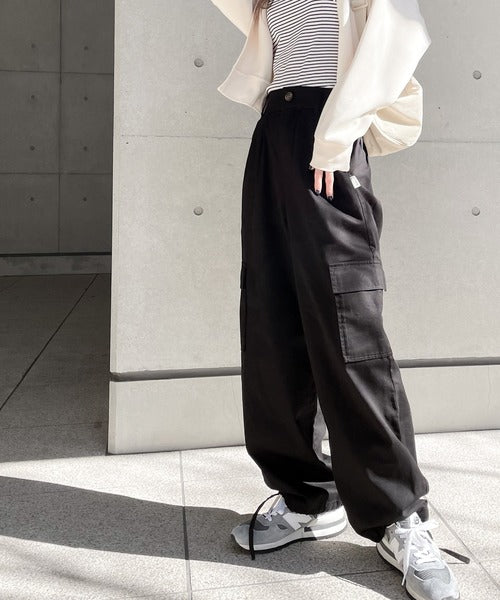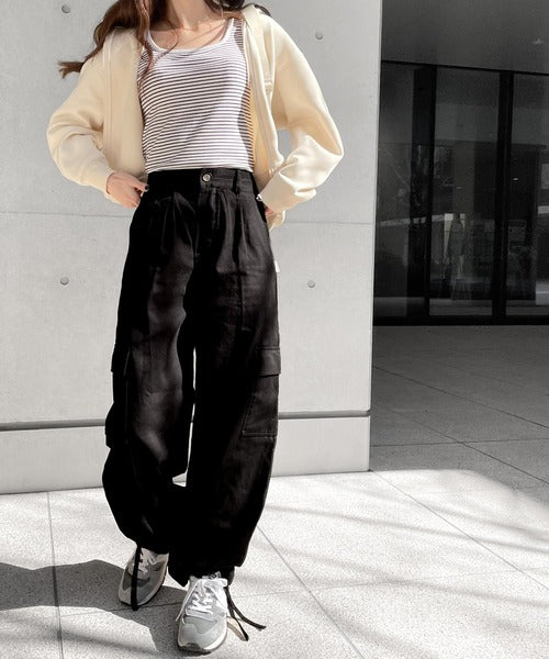 裾のドローストリングでワイドと裾絞りの2way仕様です!
