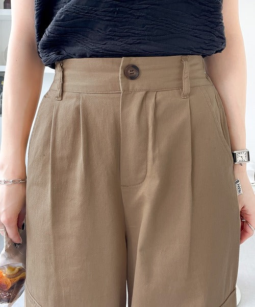 ウエストにはタックを入れ、ワイドすぎないシルエットなので