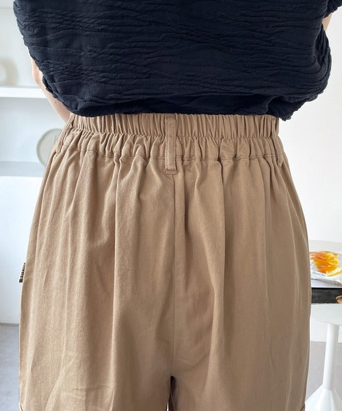 タックを入れて腰まわりにゆとりを持たせたシルエットで、