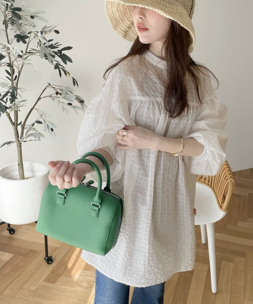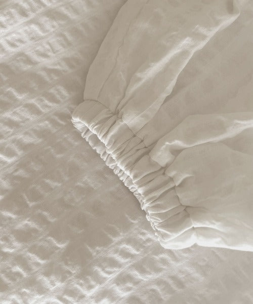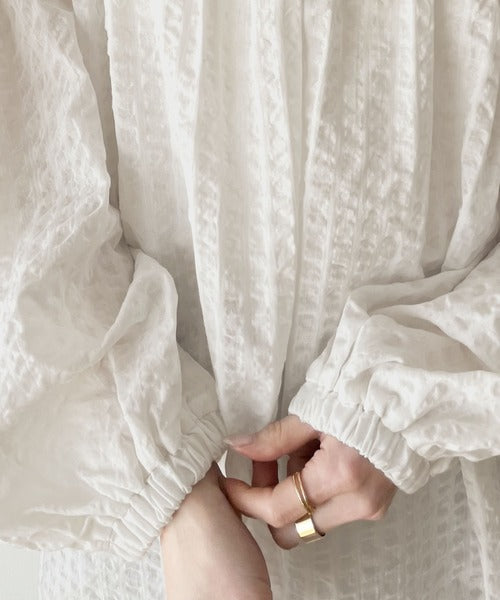 エアリーな素材にギャザーをしっかりと入れることで、