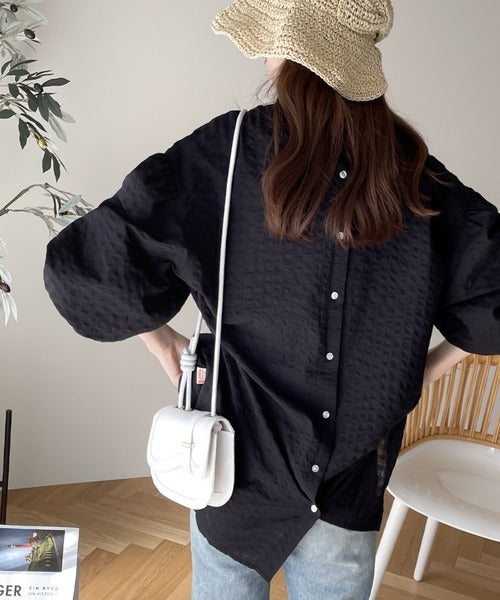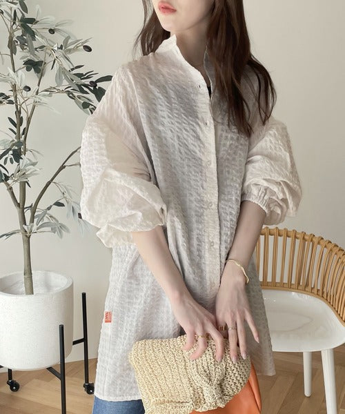 《JaVa ジャバコラボ》モテ愛されレディに。2way サッカー素材7分袖ロングシャツ jv1020064