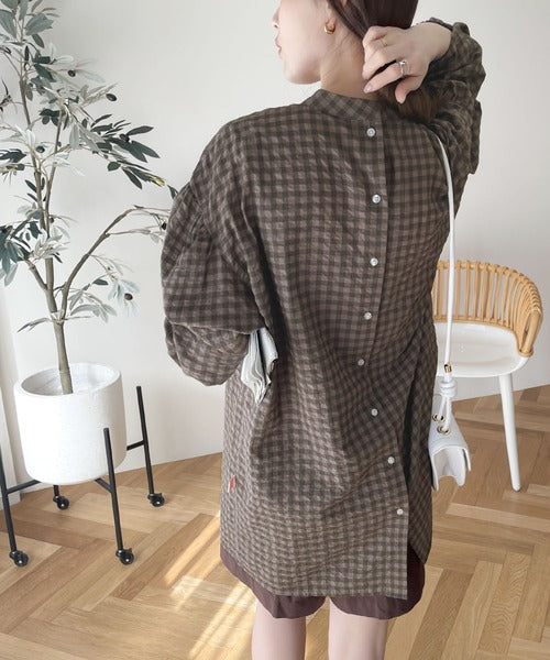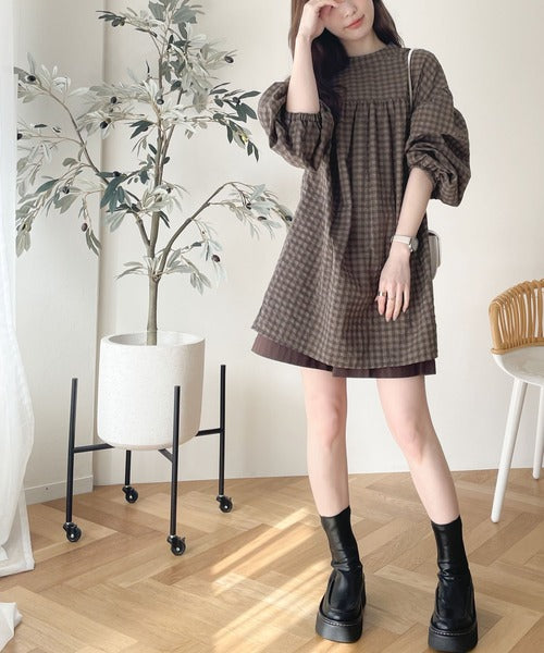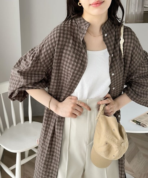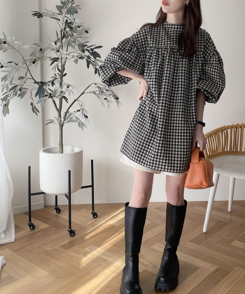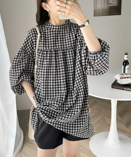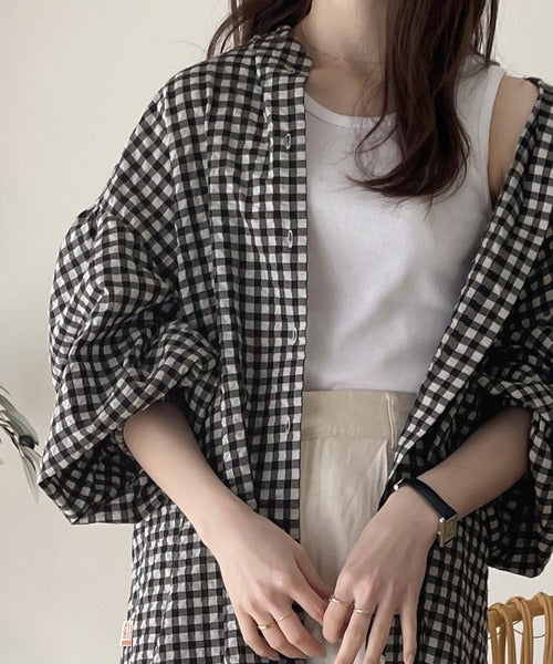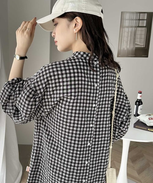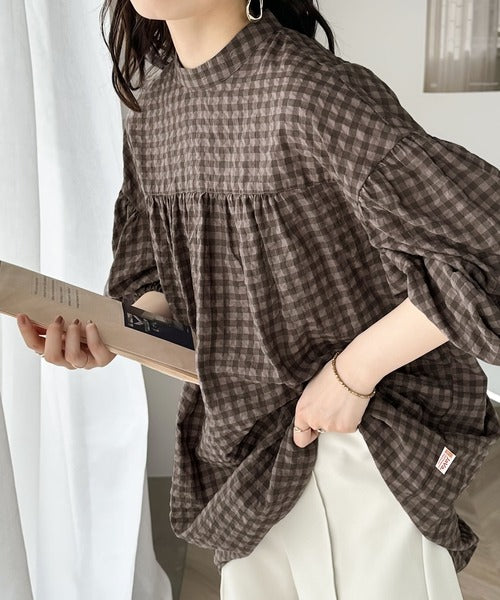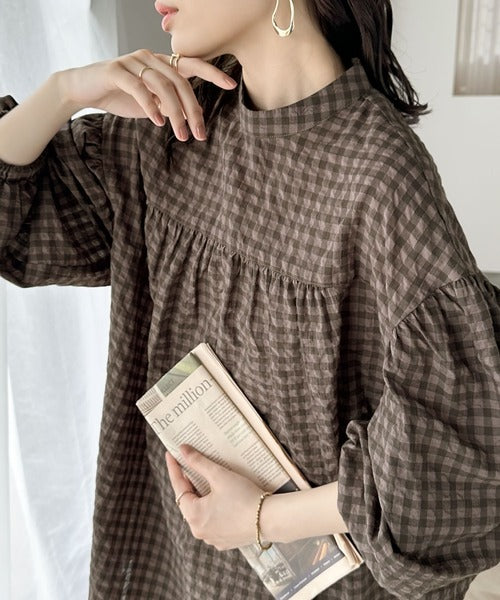 軽やかなサッカー素材にレトロチェックを施した愛らしいアイテム。