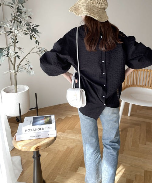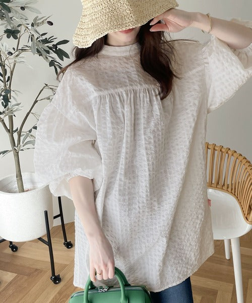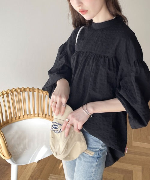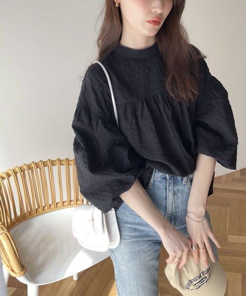 ボリュームのある袖が存在感たっぷりの甘めブラウス。