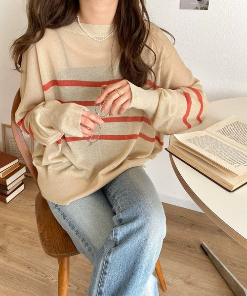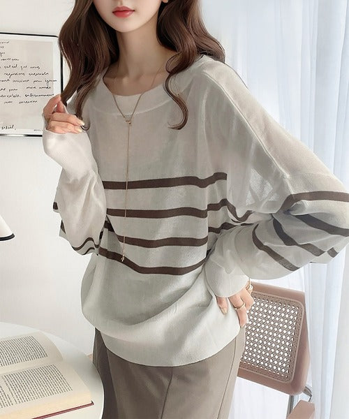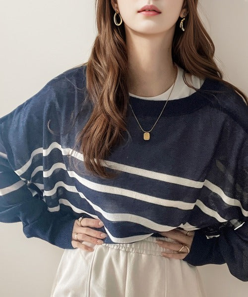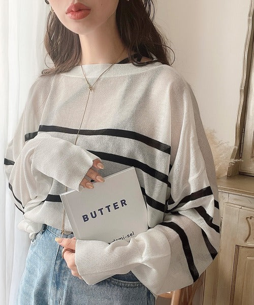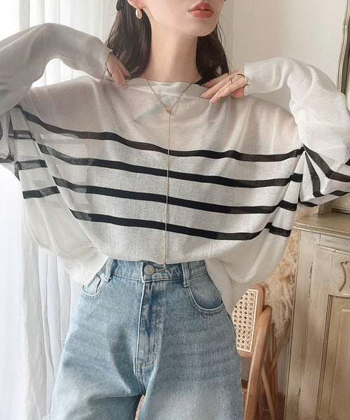 ボーダーデザインのカジュアルな印象をシアーな素材で大人っぽく格上げ。