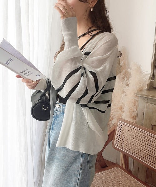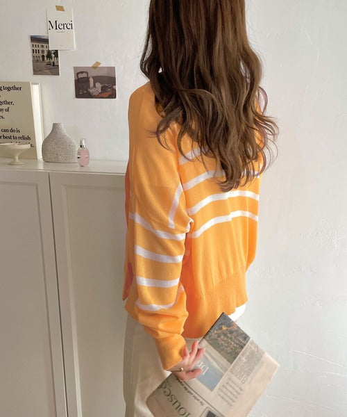 《JaVaジャバ コラボ》春のマリンテイスト。2wayシアーボーダーカーディガン jv1020071