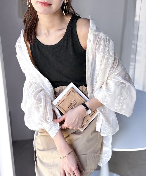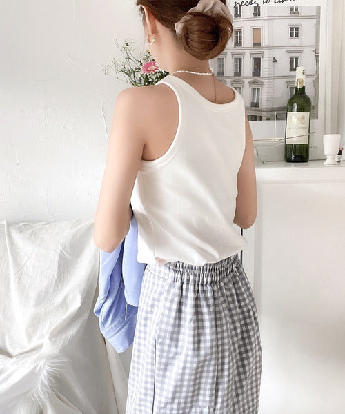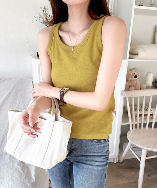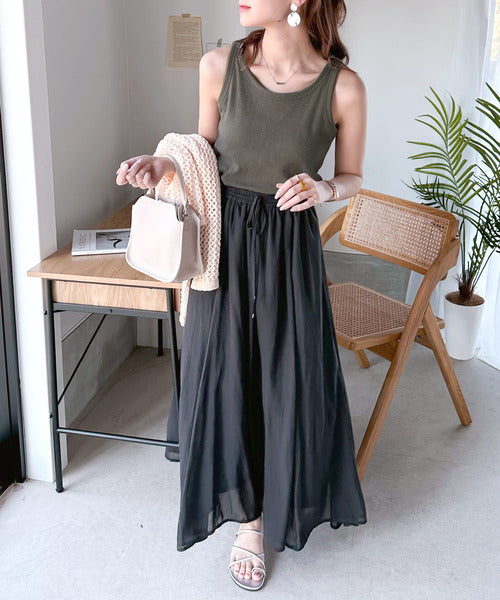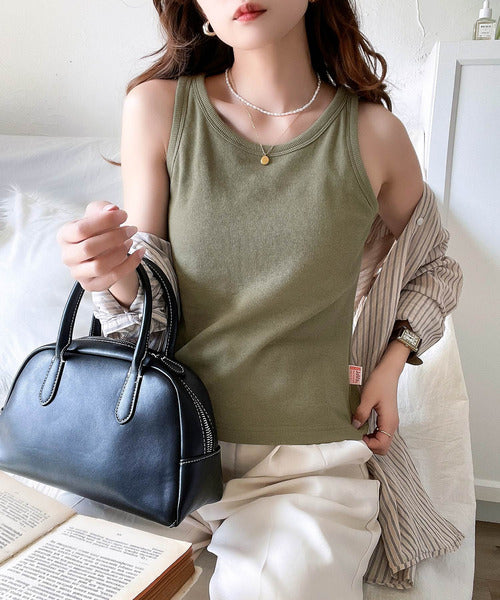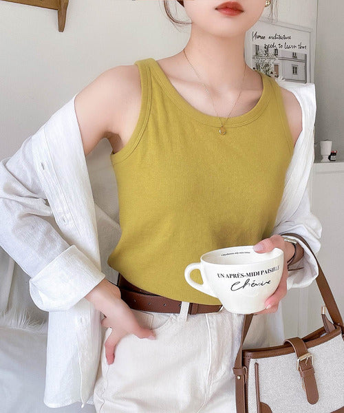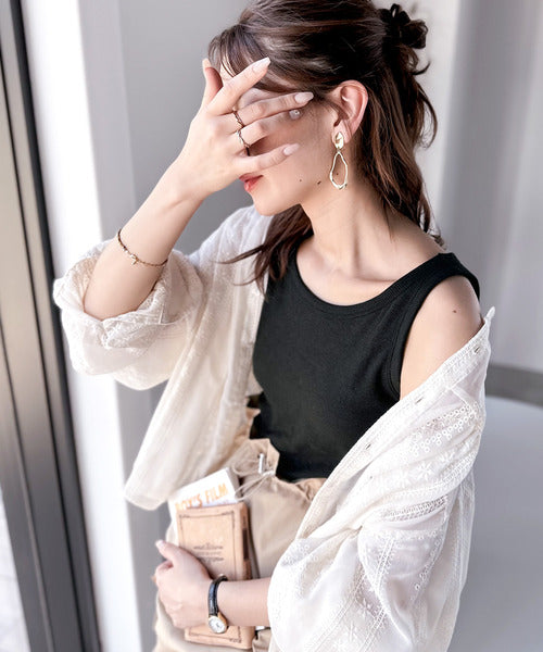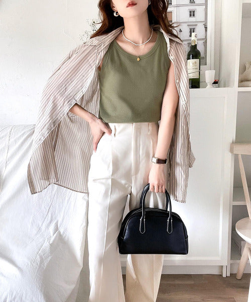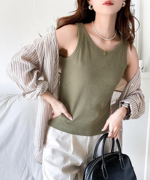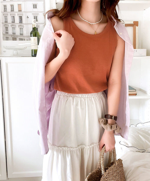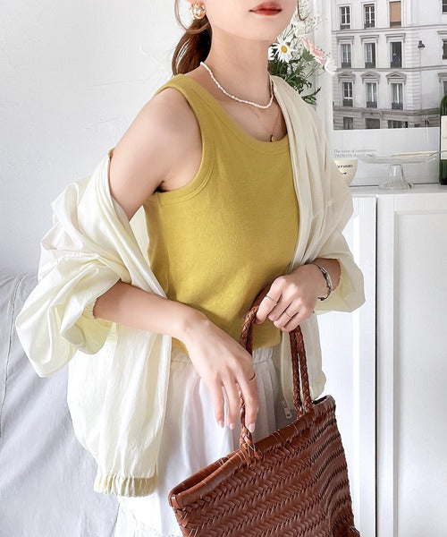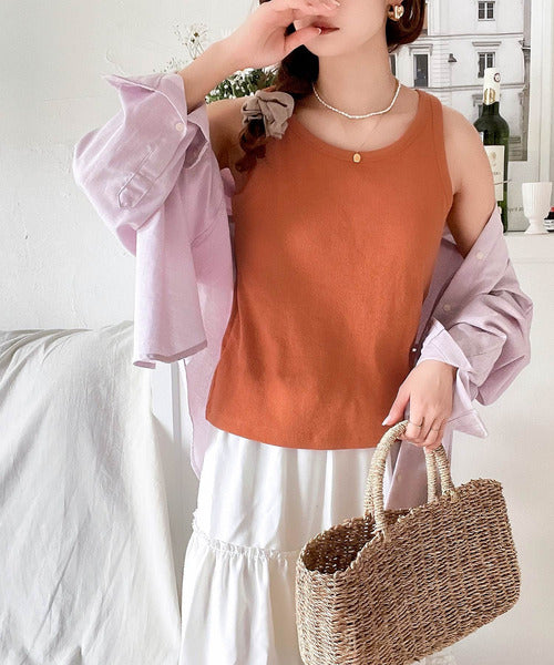 上品さを惹き立てる大人タンクは、レーヤードやコーデの差し色としても使える着回し力バツグンの1枚です。